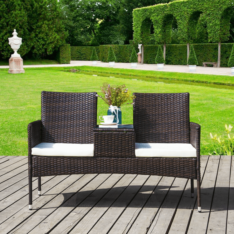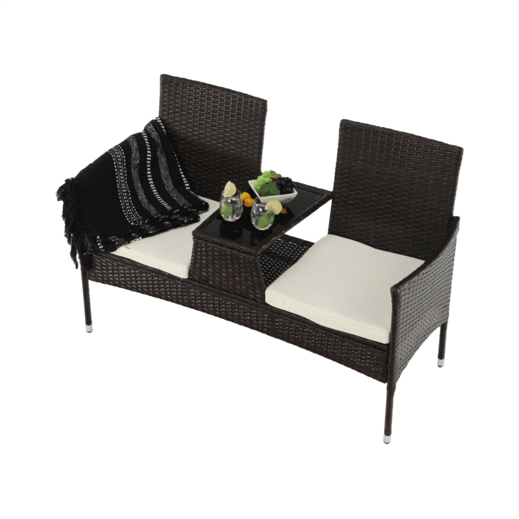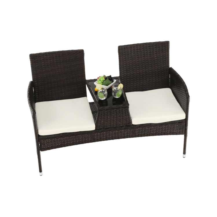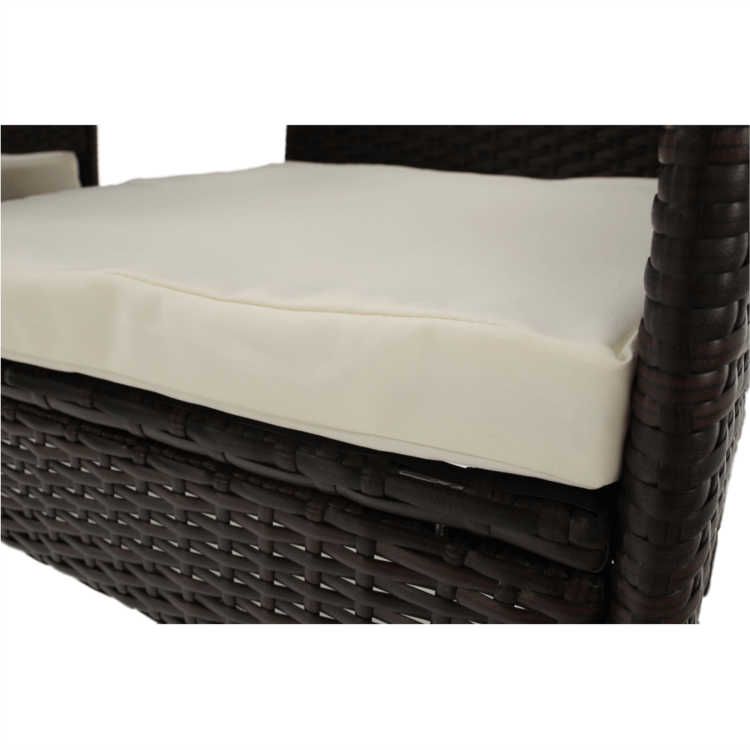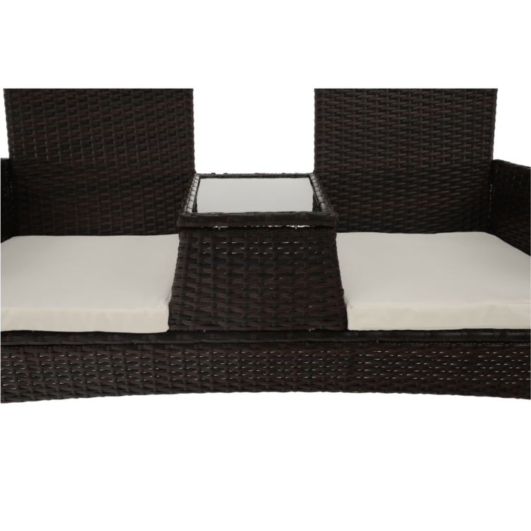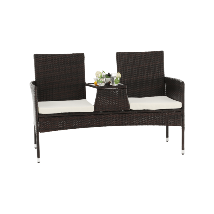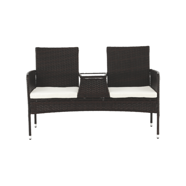 Vyrobený je z umelého ratanu v hnedej farbe. Elegantným ho robia aj vankúše v krémovej farbe, poťah je snímateľný a vodoodolný. Toto ale nie je všetko, čo Lalit ponúka. V strede tohto 2-sedu je stolík s vrchnou doskou z tvrdeného skla, ktorý sa ochotne podujme podržať vašu šálku kávy, alebo pohár vínka.