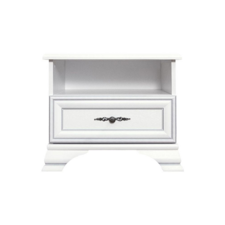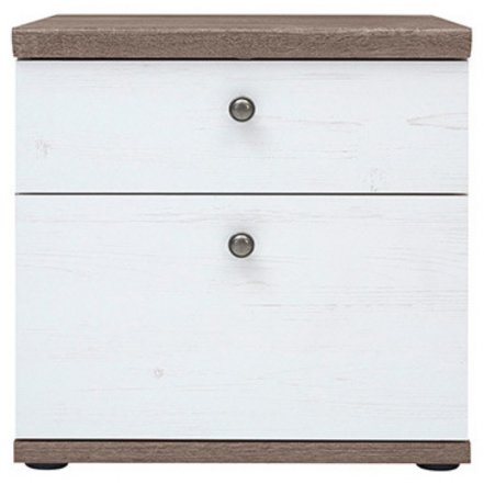 2 šuplíkový nočný stolík HANY NEW 002 s dvomi šuplíkmi. Vyrobený je z kvalitnej laminovanej drevotriesky v bielom prevedení s ABS hranami.