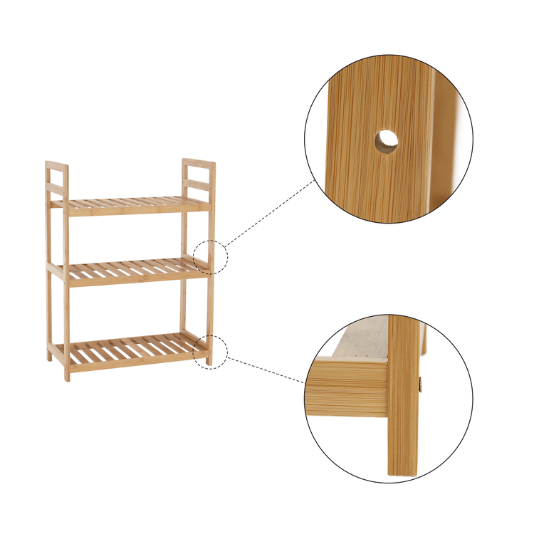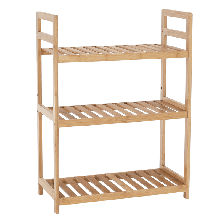 Regál FIORE TYP 1 je praktický a má 3 police. Je vyrobený z bambusu v prírodnom odtieni a ponúka skvelý úložný priestor, ktorý dotvorí každý interiér. Môžete ho využiť v kúpeľni, predsieni, kuchyni, ale aj v obývačke. Tri police sú vďaka predvŕtaným otvorom výškovo nastaviteľné, vďaka čomu si regál môžete upraviť podľa vlastných predstáv. Povrch celého regálu je veľmi jemný a hladký čo zabráni zraneniu v podobe nepríjemných triesok.