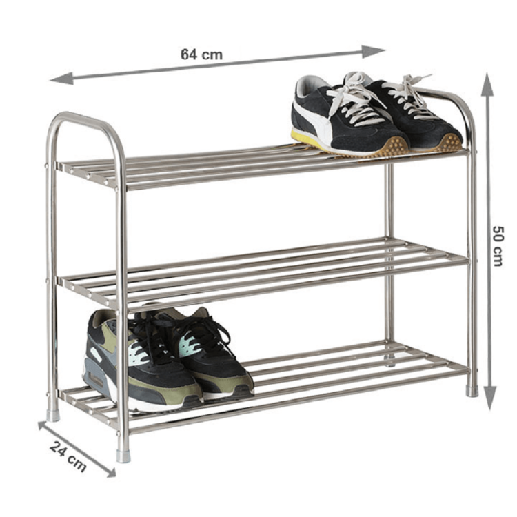 Vyrobený je z nehrdzavejúcej ocele. Nezaberie veľa miesta, a zároveň vám poskytne dostatočný priestor na uloženie vašej obuvi v podobe troch políc.
