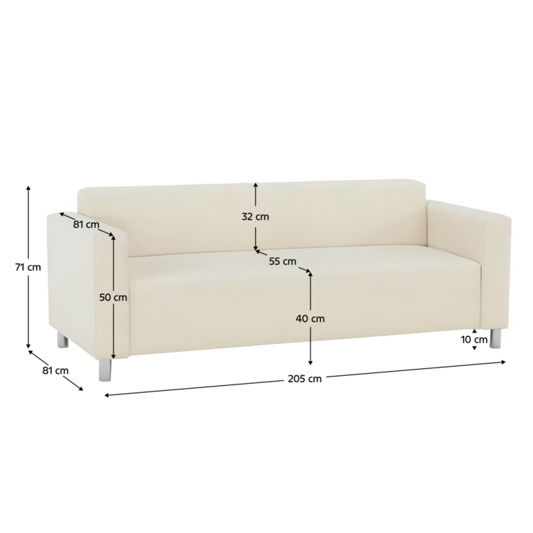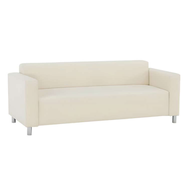 Nožičky v striebornej farbe dodávajú trojsedu štýl. Je vhodný aj do malého priestoru, kde práve nožičky pomôžu priestor opticky zväčšiť a prevzdušniť. Stále veľmi obľúbená ekokoža pôsobí luxusným dojmom. V nestarnúcej béžovej farbe. Sedačka je celočalúnená, môžete ju teda pokojne umiestniť aj do priestoru. Doplňte sedačku HOMKER dizajnovými kožušinami, získate tak moderný a štýlový celok. Vhodná aj do kancelárskych priestorov.