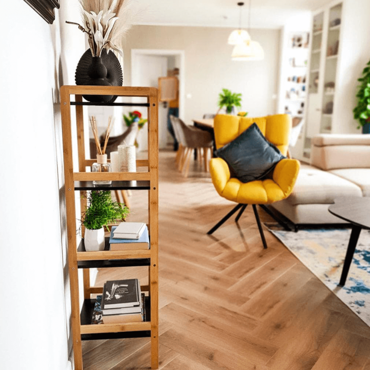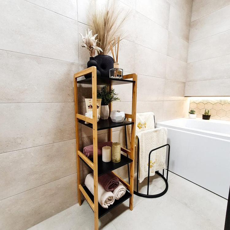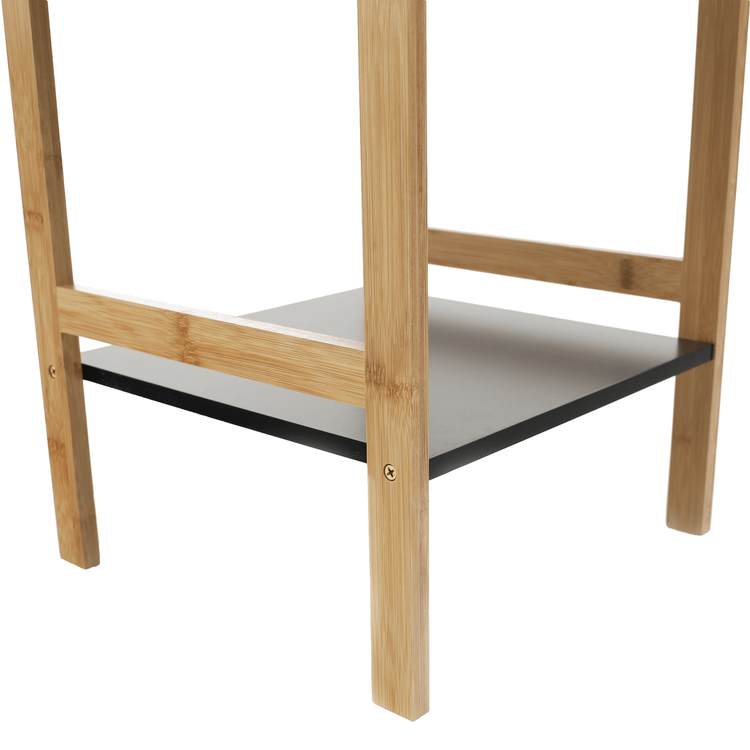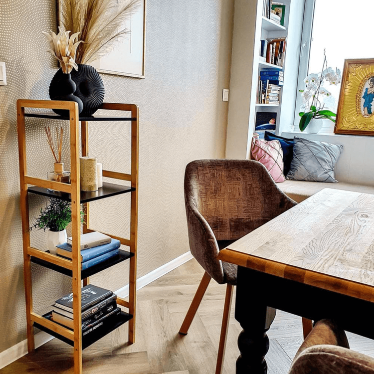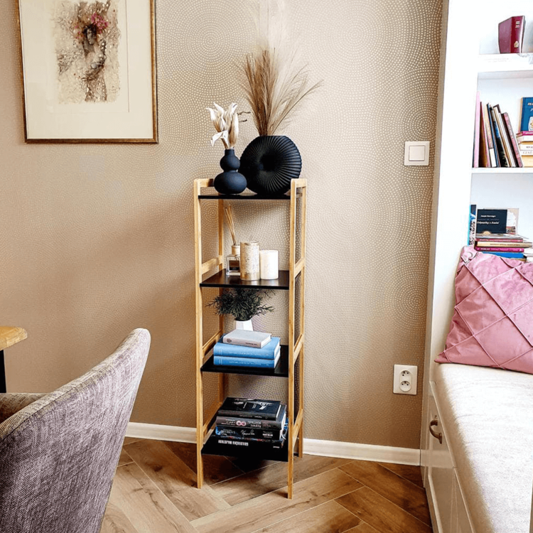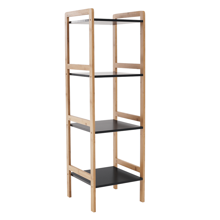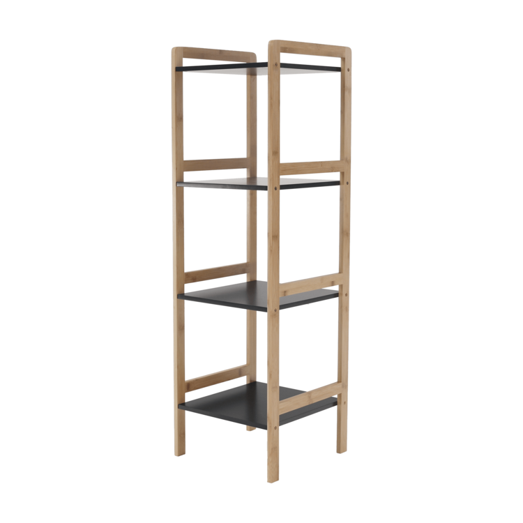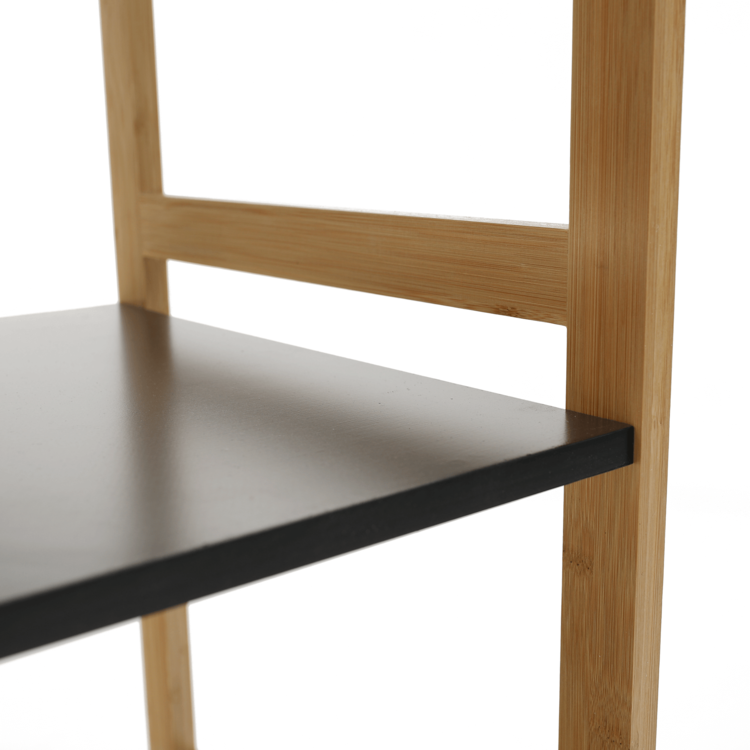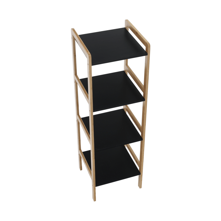 Konštrukcia je vyrobená z bambusu a police sú z MDF. Farebné prevedenie prírodná/čierna je nenásilné, preto si nájde uplatnenie v každej miestnosti vo vašej domácnosti. Úložný priestor predstavujú štyri poličky.