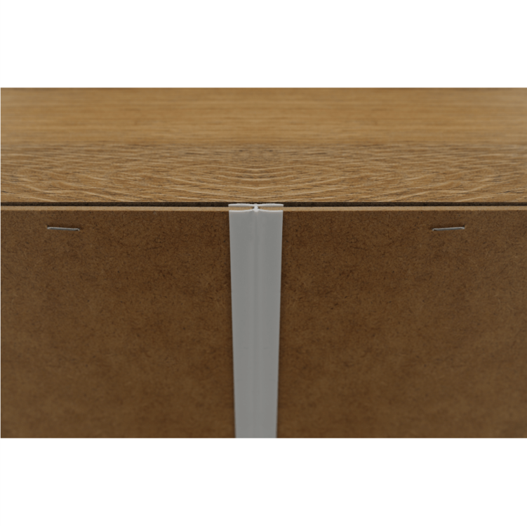 Vyrobená je z laminovanej drevotriesky s ABS hranami s hrúbkou až 40 mm. Originálnou ju robí aj farebné prevedenie dub grand s 3D efektom.