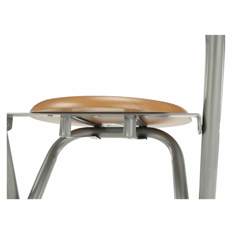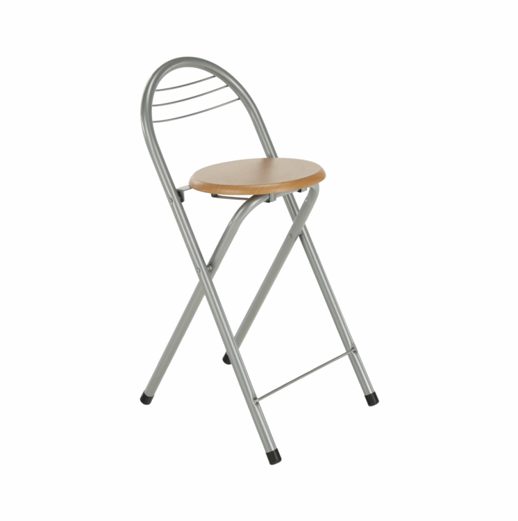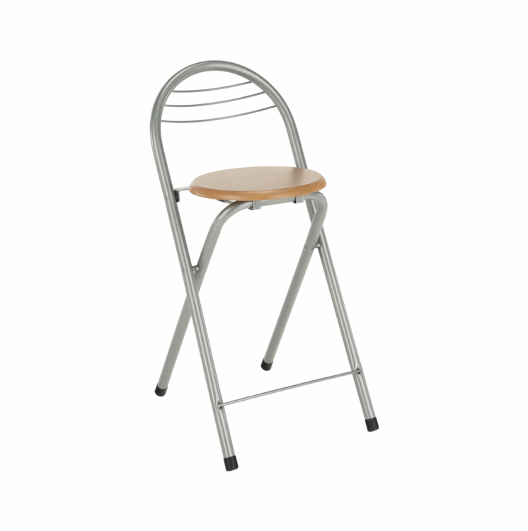 Barová stolička, kov s povrchovým náterom alumínium v kombinácii s drevom, Odtieň dreva buk, priemer 39 cm,