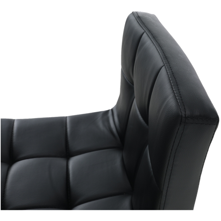 Ponúkame vám barovú stoličku s opierkou KANDY NEW, ktorá príjemne doladí každú modernú jedáleň. Poťah je z kvalitnej ekokože vo farebnom prevedení čierna spojená s kovovou konštrukciou. Výnimočnou túto barovú stoličku KANDY NEW robí otočné výškovo nastaviteľné sedadlo. Sedadlo si nastavíte pomocou páčky. Výška sedu je tak od 61 do 82 cm a hĺbka sedu je 35 cm. Kandy new ohúri trendovým dekoratívnym prešitím.