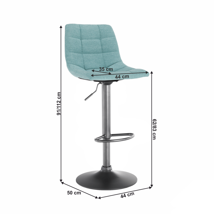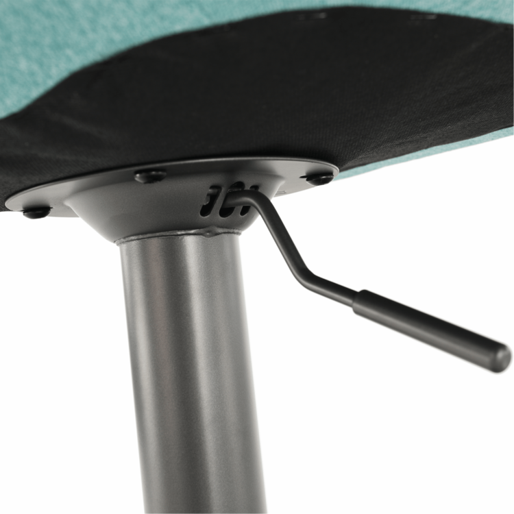 Sedenie na nej je veľmi príjemné a pohodlné. Konštrukcia stoličky je vyrobená z kovu v čiernej farbe, sedacia časť je zaodetá mentolovou látkou. Výšku stoličky si viete nastaviť pomocou páčky pod sedadlom. V spodnej časti nájdete oporu pre nohy. Zaujme vás aj dekoratívne prešitie, ktoré zvýrazní celý dizajn stoličky.