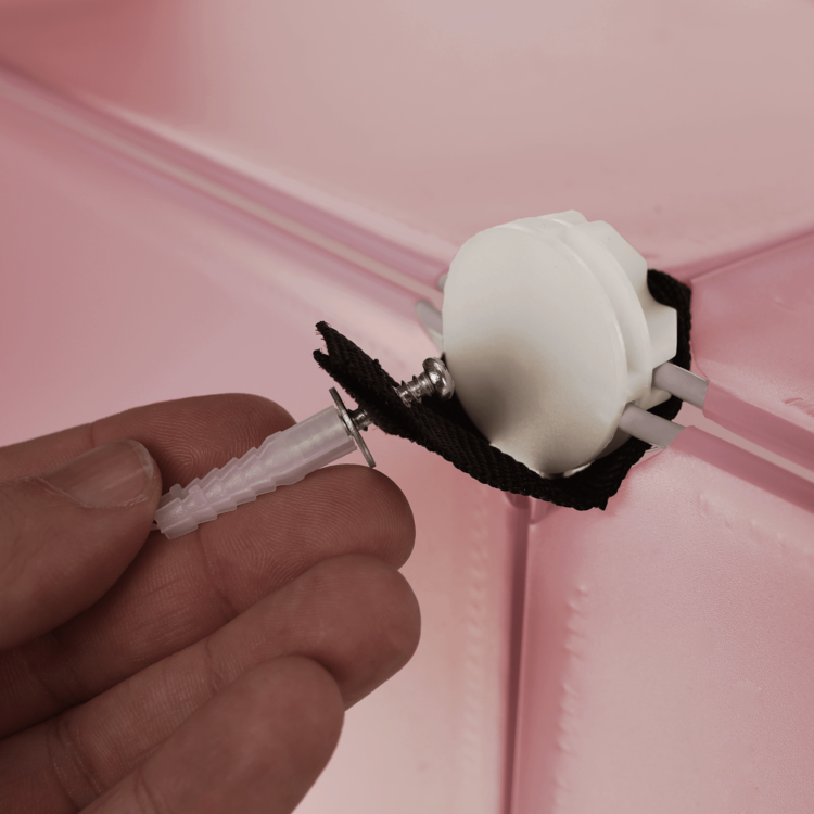 V balení sa nachádza upevnenie k stene, ktoré je potrebné používať spolu s výrobkom, aby nedošlo k prevráteniu.