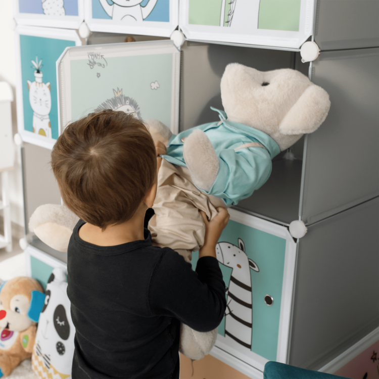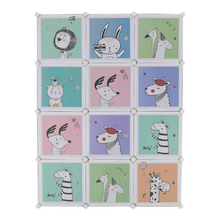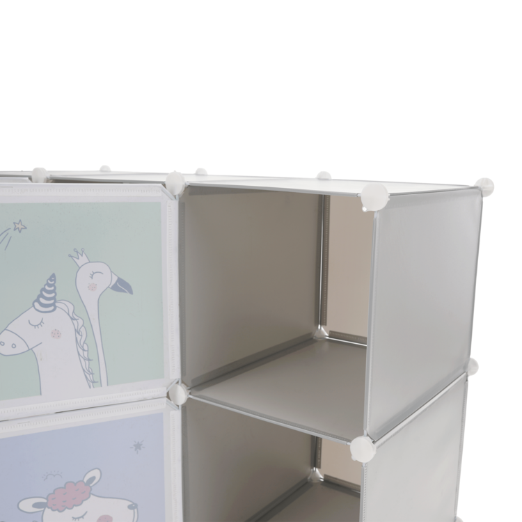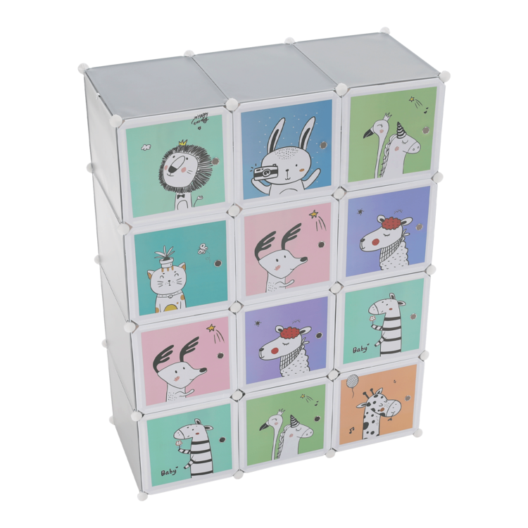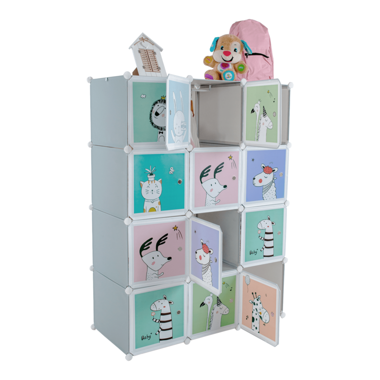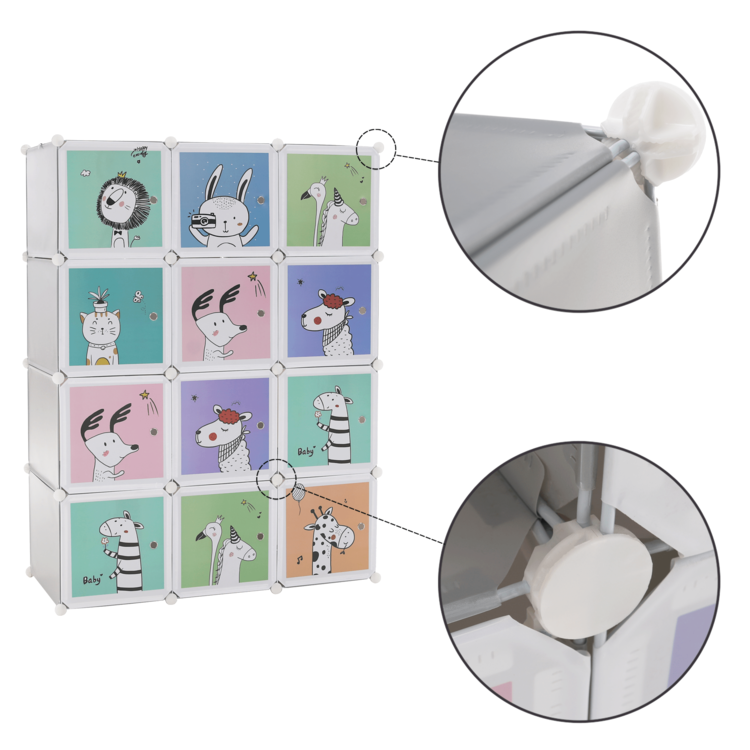 Skriňa HAKON je modulárna, vďaka čomu si ju viete poskladať podľa vaši aktuálnych predstáv. Skladá sa z kovovej konštrukcie, plastových úložných boxov s nosnosťou 5kg a závesného systému. Skriňa má bielu farbu a jej dvierka sú pokryté veselými detskými motívmi.