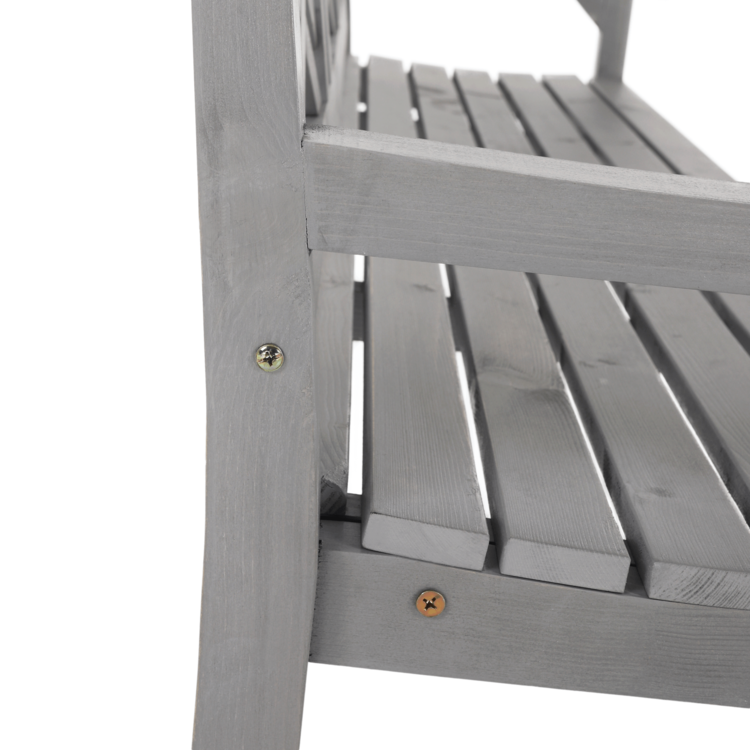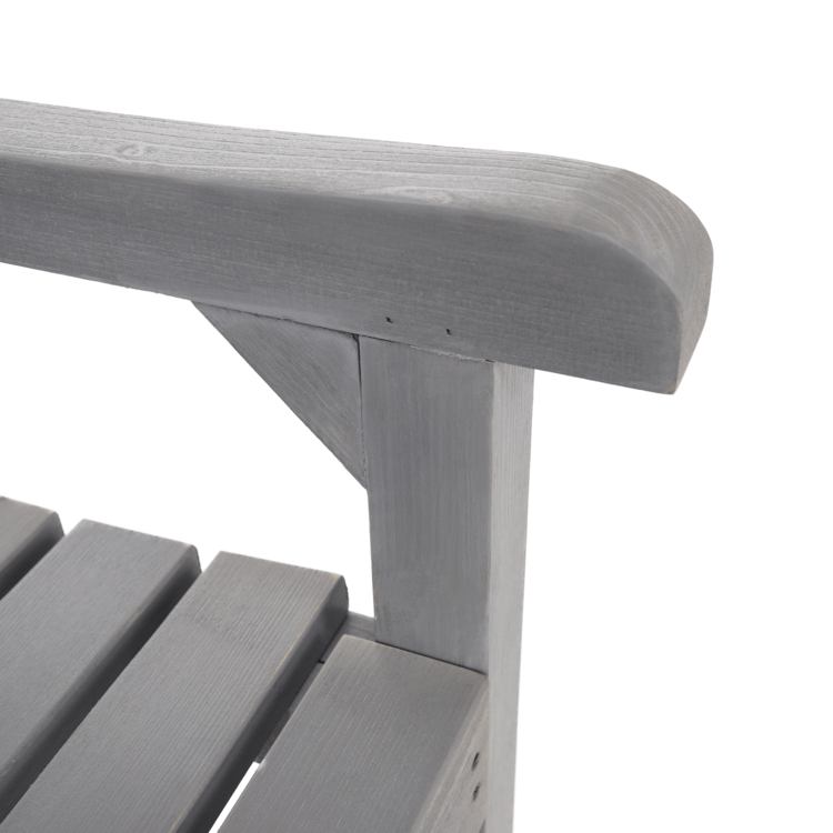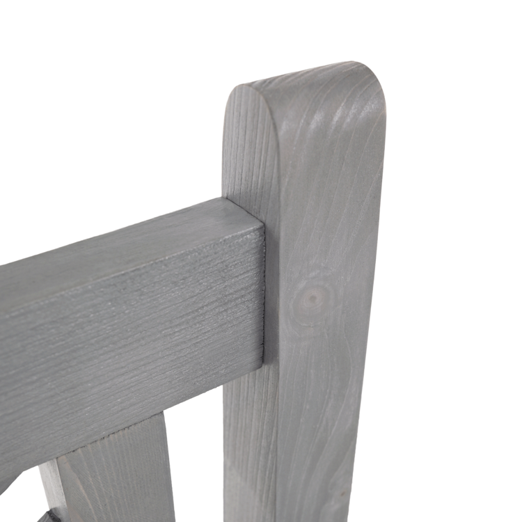 Je vyrobená z dreva v príjemnom sivom prevedení. Romantický nádych jej dodávajú jemné ornamenty na opierke chrbta.