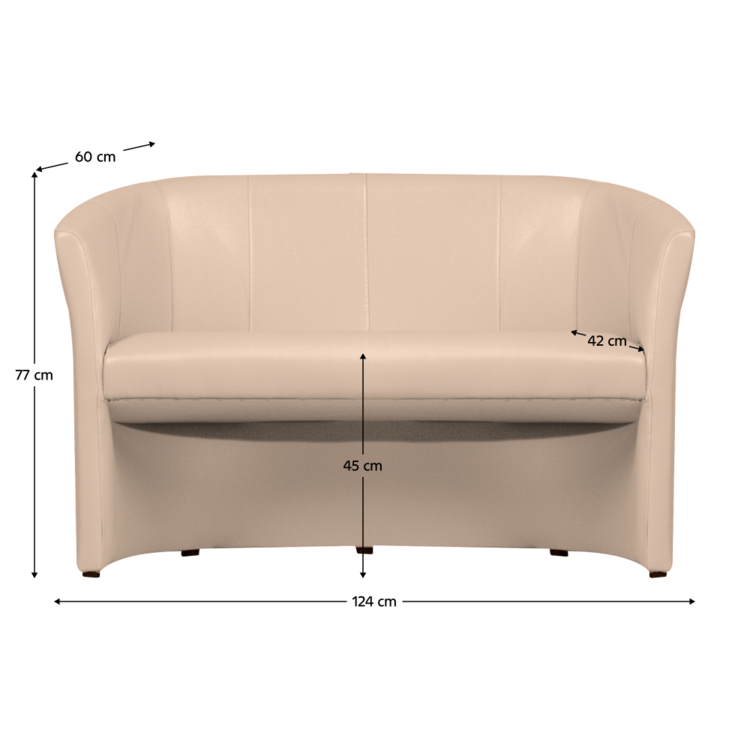 Žiarivá béžová farba dvojkresla prinesie eleganciu do vášho príbytku, a samozrejme oživí interiér. Premeňte svoj domov na štýlové miesto a vyberte si kreslo CUBA. Okrem toho, že je praktické, dýcha aj novým dizajnom. Svojim priaznivcom poskytuje príjemné sedenie aj vo dvojici. Jadro sedadla tvorí purpena s výškou sedu 45 cma hĺbkou sedu 45 cm.