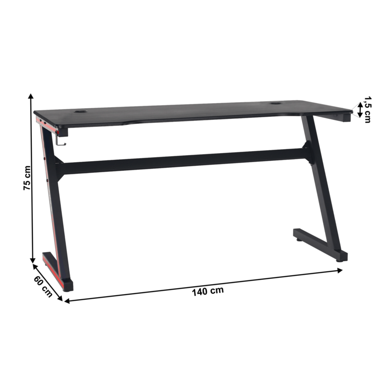 Stôl MACKENZIE je vhodným doplnkom každej študentskej izby, pracovne alebo domácej herne. Stôl je vyrobený z pevného kovového rámu čiernej farby. Konštrukcia má tvar Z, vďaka čomu sa bezproblémov zasuniete pod stôl. Celkový dizajn energicky zvýrazňujú červené nálepky situované po bokoch stola. Vrchná dosak stola je vyrobená z MDF potiahnutej PVC fóliou. Plát stola navyše obsahuje dva otvory, cez ktoré môžete prakticky vyviesť káble k podlahe alebo elektrickému napájaniu. Skvelým doplnkom, ktorý ocenia predovšetkým hráči, je držiak na slúchadlá.