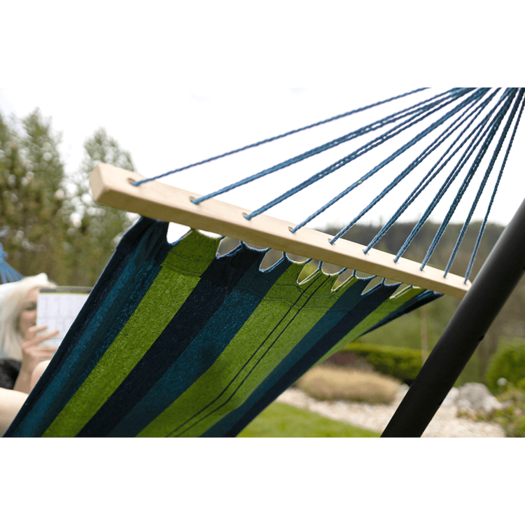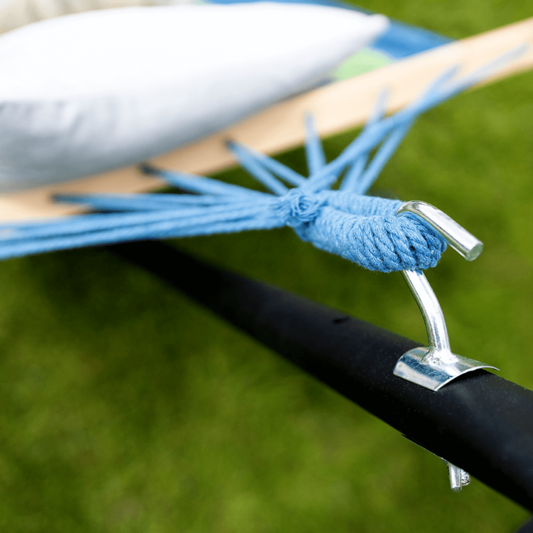 Ideálny doplnok aj do interiéru. Očaria vás aj použité farby tyrkysová, modrá a zelená. Hojdaciu sieť je možné upevniť o dvojicu stromov alebo ju zavesiť na špeciálnu konštrukciu. Je vhodná pre jednu osobu s nosnosťou do 120 kg.