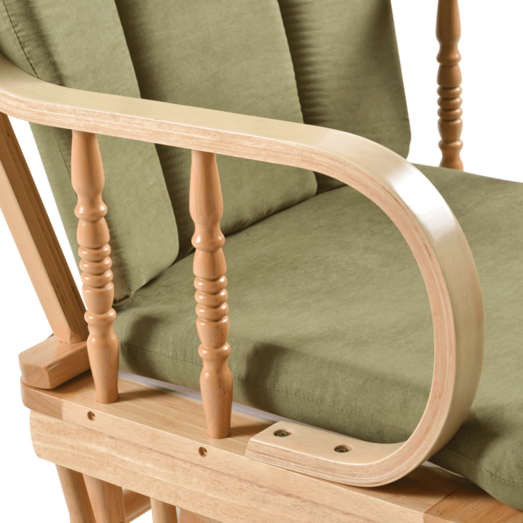 Vďaka podnožke vám kreslo zabezpečí maximálné pohodlie a oddych pri relaxe. Vyrobené je z masívneho kaučukového dreva v prírodnom odtieni. Kreslo je dodávané s vankúšmi, ktoré sa postarajú o pohodlné sedenie a opretie chrbta. Vankúše sú čalúnené látkou v zelenom farebnom prevedení. Poťah na vankúšoch nie je snímateľný, odporúča sa čistiť len vlkhou handričkou. Kreslo aj podnožka disponujú hojdacím mechanizmom, takže sa môžete nechať unášať pokojom a relaxom.