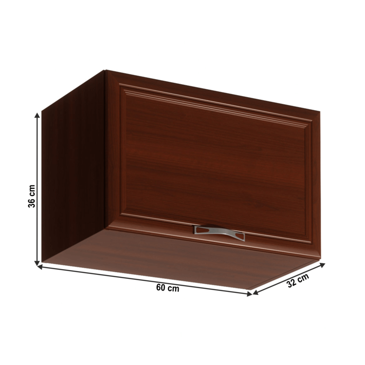 Horná skrinka G60KN je s dvierkami, ktoré sa otvárajú vyklápaním dohora. Dvierka zdobí praktická plastová úchytka. Rustikálne pôsobiace lišty sú z kvalitnej MDF.