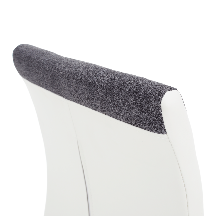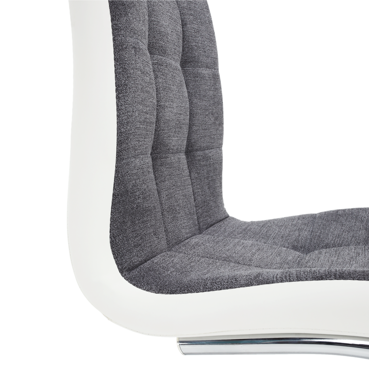 Kvalitná látka v tmavosivej farbe je príjemná na dotyk. Vizuálnu hodnotu zvyšuje lem v bielej ekokoži. Chrómované nohy dodávajú stoličke akýsi lesk, stolička vďaka tomu pôsobí luxusne a vy sa budete cítiť rozmaznávaní. Zažite príjemné a ničím nerušené chvíle so svojou rodinou.