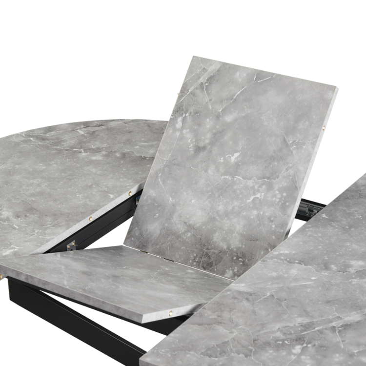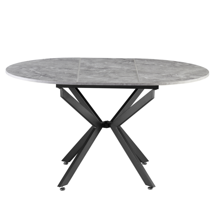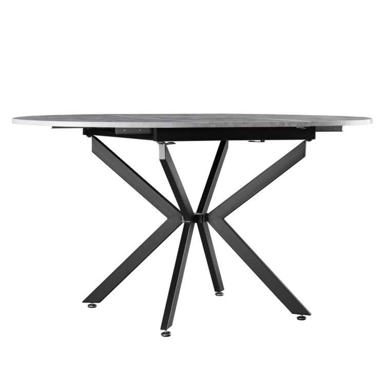 Doplňte svoju jedáleň alebo kuchyňu o moderný a praktický rozkladací stôl ABERO TYP 1. Ideálny na rodinné stretnutia pri dobrom jedle, tento stôl prinesie do vášho interiéru elegantnú farebnú kombináciu betón a čierna. Okrúhla vrchná doska je vyrobená z kvalitného MDF materiálu. Stôl ABERO TYP 1 zaujme nielen svojím okrúhlym tvarom, ale aj zaujímavo prekríženými kovovými nohami. Hlavnou výhodou tohto stola je jeho rozkladacia funkcia, ktorá ho robí praktickým riešením do každého priestoru.