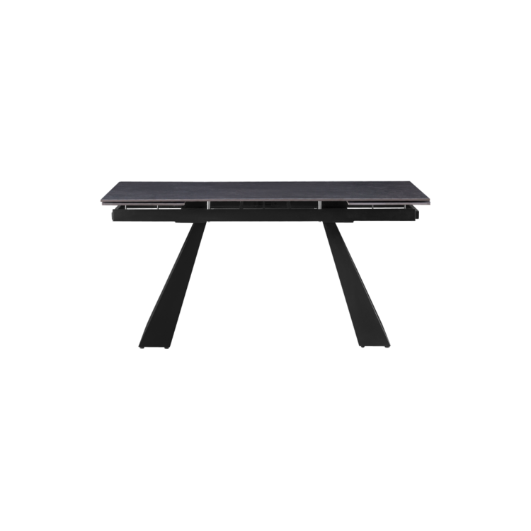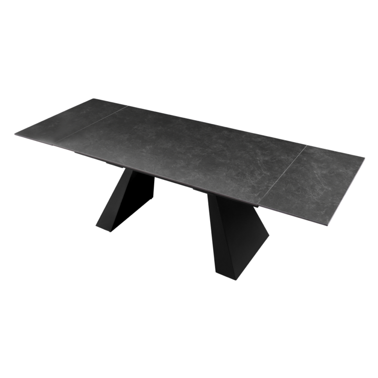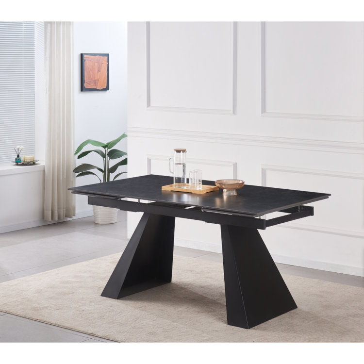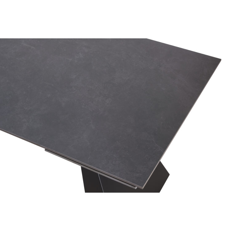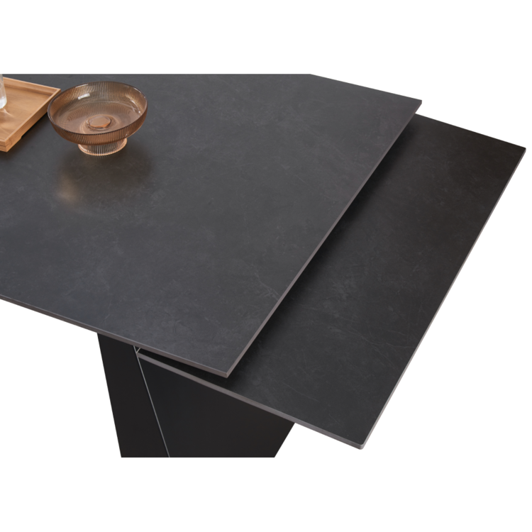 Kovové nohy v čiernej farebnej kombinácii dodávajú skvelý kontrast k doske stola. Veľká stolová doska je vyrobená z keramiky v odtieni grafit. Jedálenský stôl je rozkladací, využijete ho pri rôznych oslavách, poslúži aj pri nečakanej návšteve.