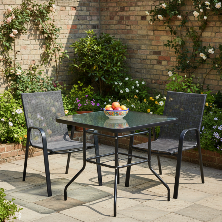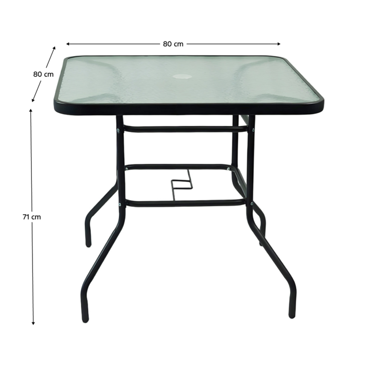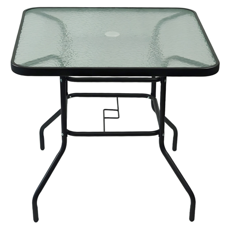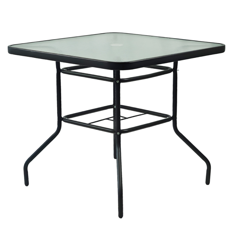 Záhradný príručný stolík, čierna oceľ/tvrdené číre sklo, HABIR
