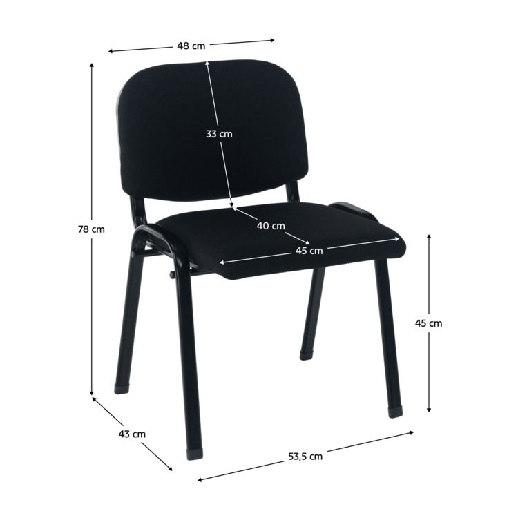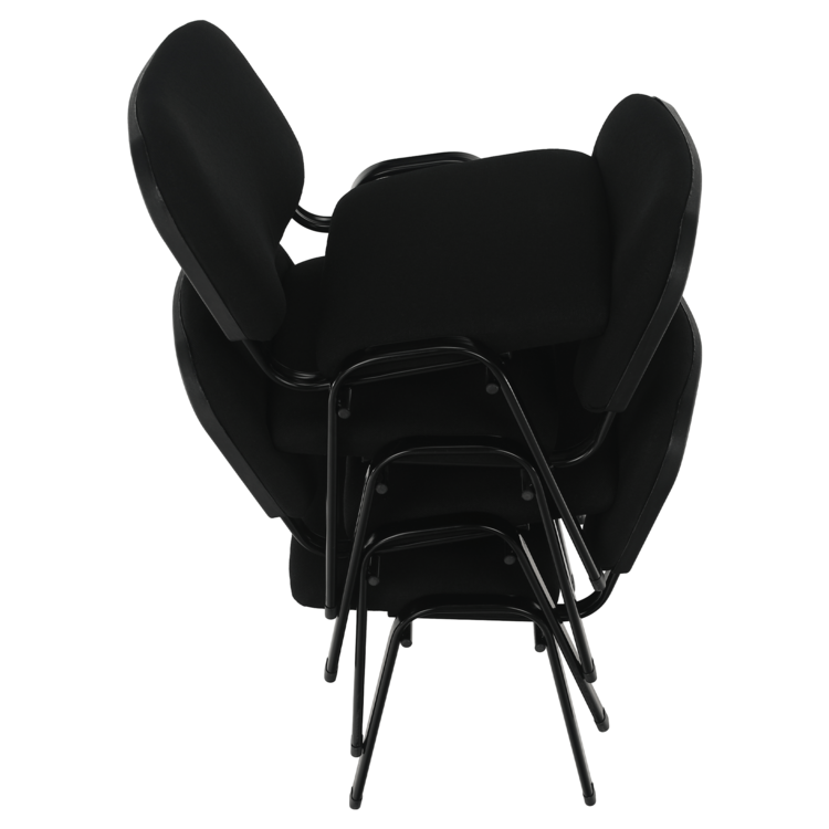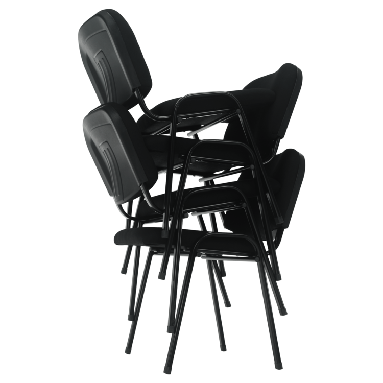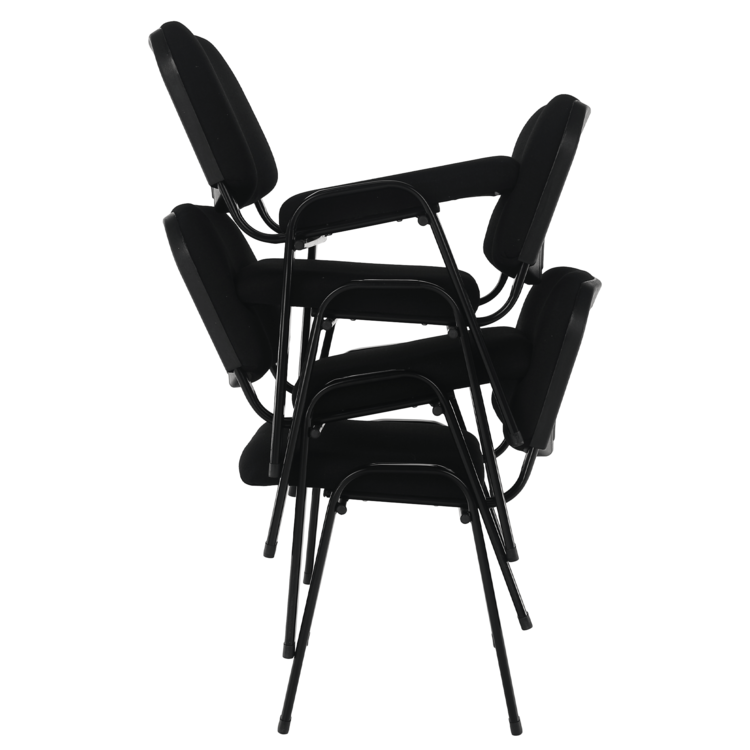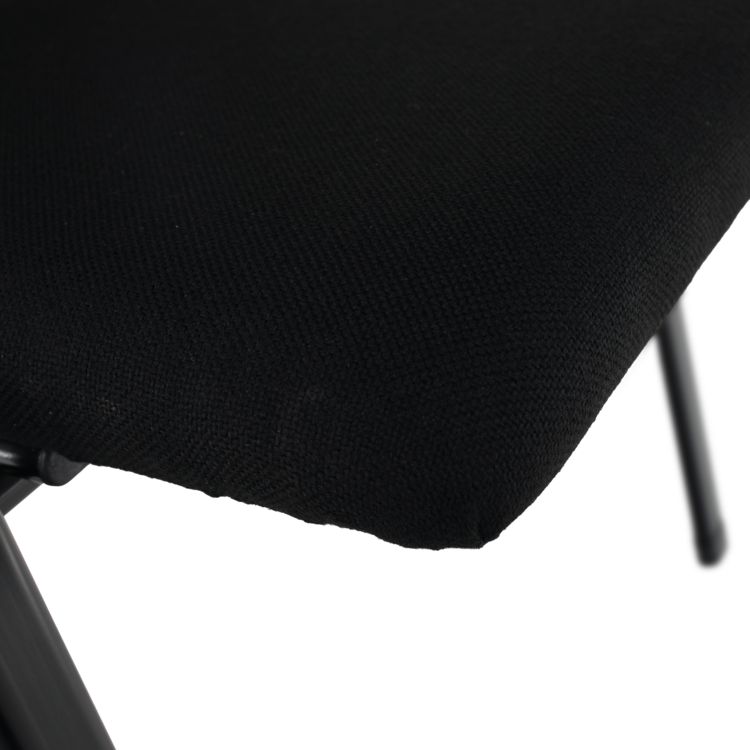 Maximálne pohodlné sedenie zaručuje stabilná a pevná kovová konštrukcia v čiernej farbe. Sedadlo a opierka sú čalúnené neutrálnou čiernou látkou. Stolička je stohovacia, ľahko stoličky poukladáte na seba. Jednak tým šetríte miesto, na druhej strane viete stoličky jednoducho presúvať medzi miestnosťami. Stolička je ideálna aj pre mestá a obce do kultúrnych sál, salónikov a konferenčných miestnosti. Nosnosť stoličky je až 100 kg.