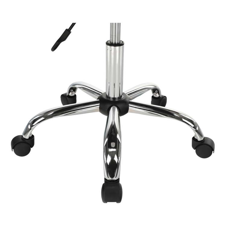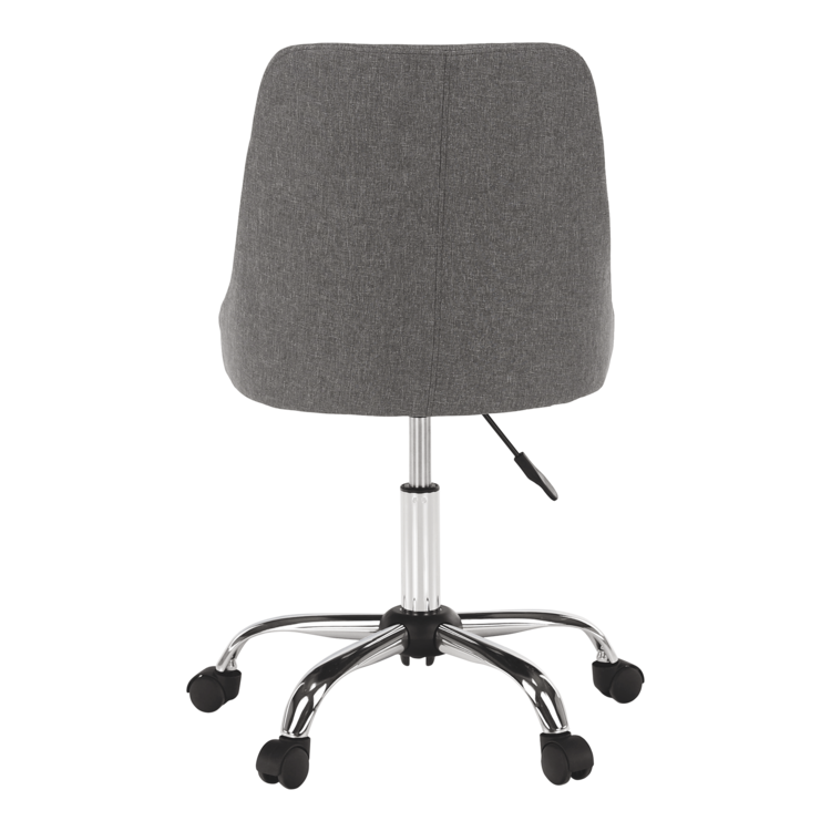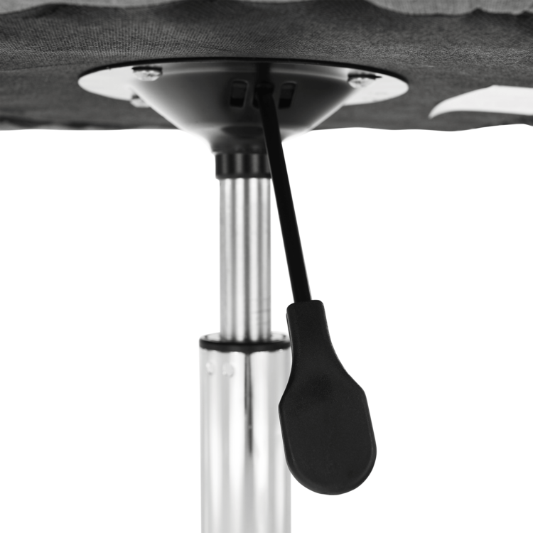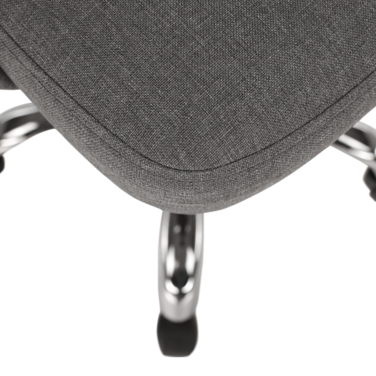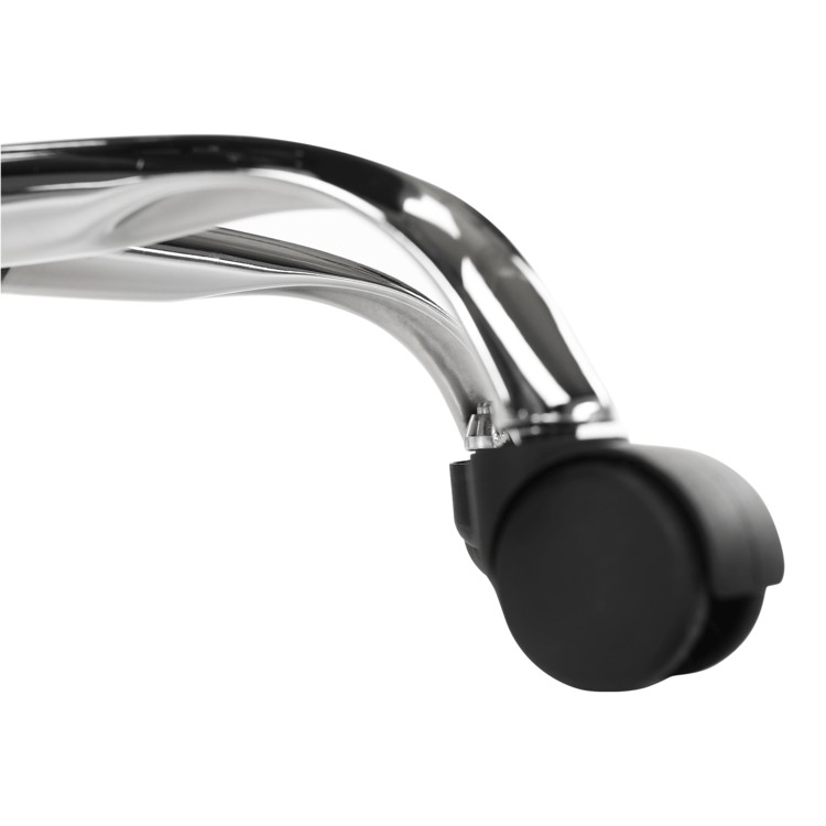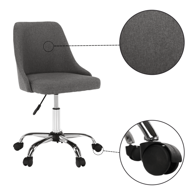 Elegantná, v ekokoženom vzhľade v sivom prevedení. Na stabilite jej pridáva chrómová podstava doplnená o kolieska, ktoré sú vhodne na akúkoľvek podlahu. Výšku sedu si tiež viete jednoducho regulovať mechanizmom umiestneným pod sedadlom.