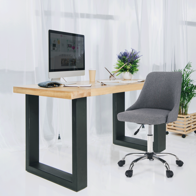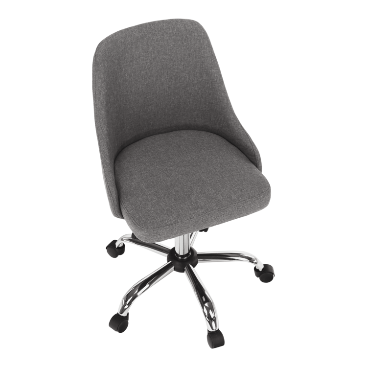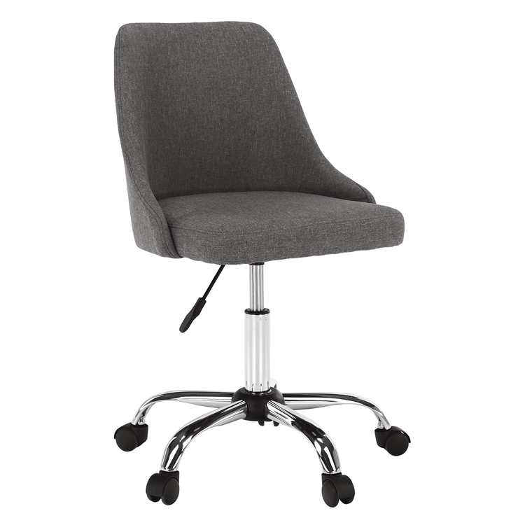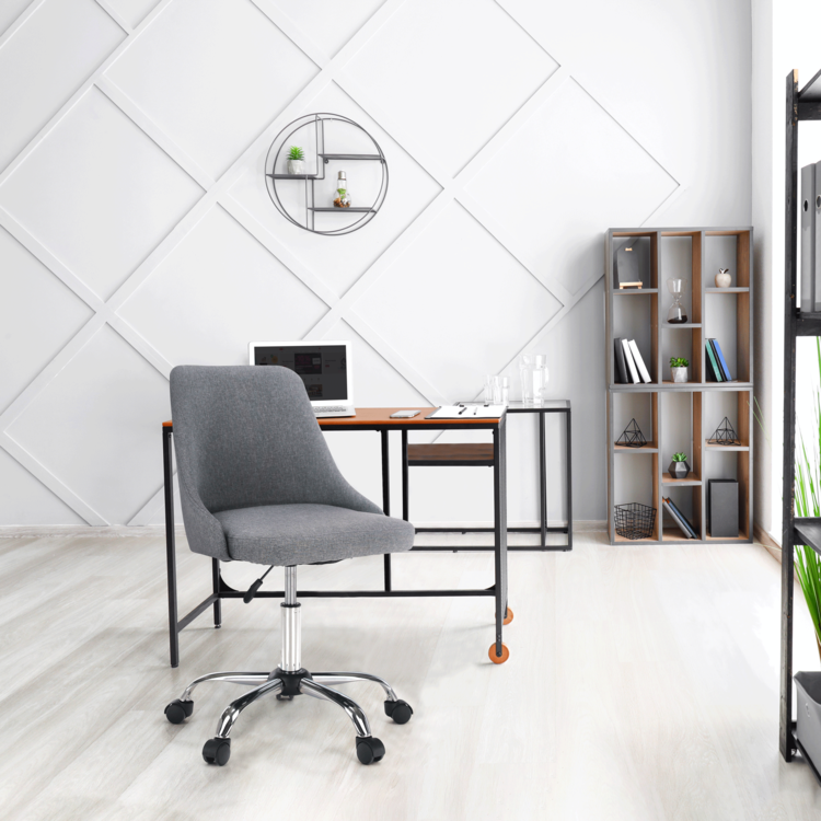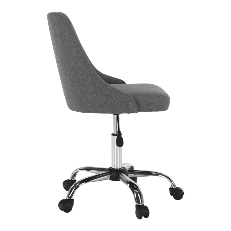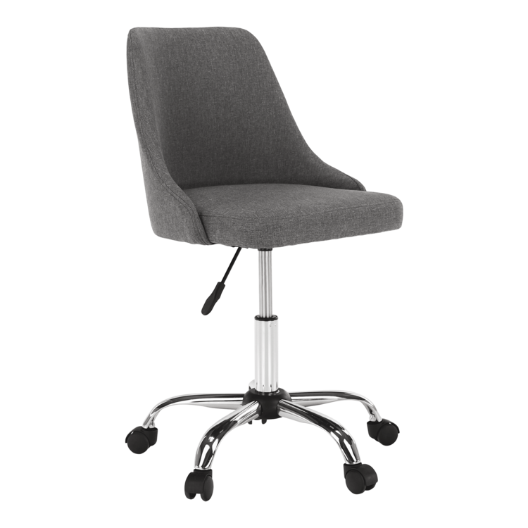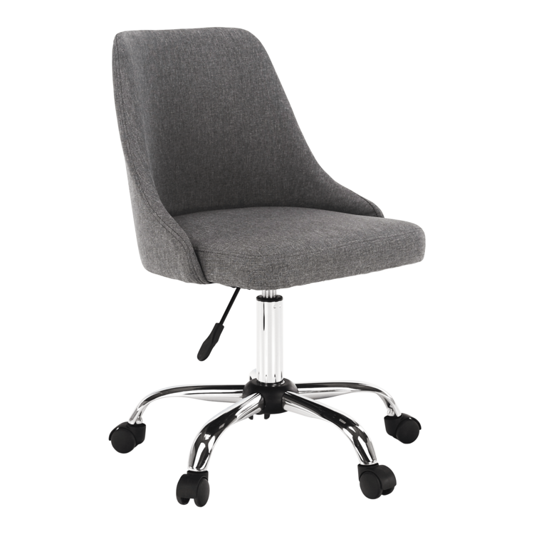 Elegantná, v ekokoženom vzhľade v sivom prevedení. Na stabilite jej pridáva chrómová podstava doplnená o kolieska, ktoré sú vhodne na akúkoľvek podlahu. Výšku sedu si tiež viete jednoducho regulovať mechanizmom umiestneným pod sedadlom.