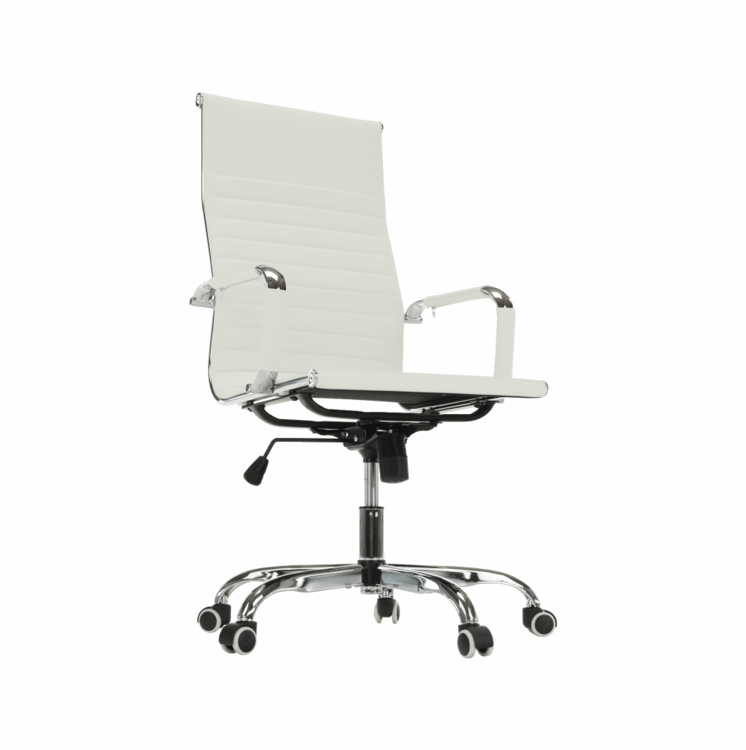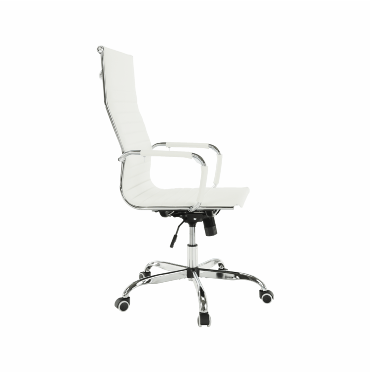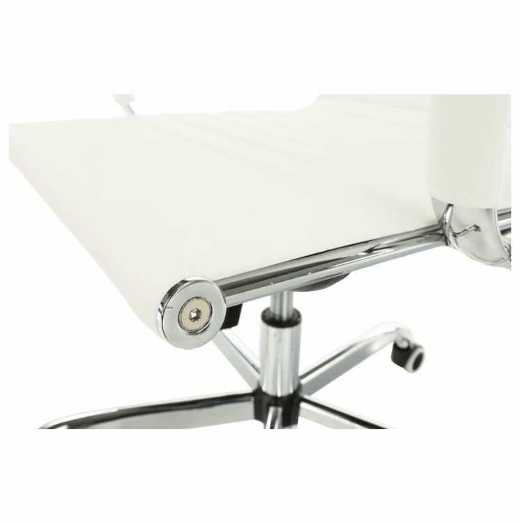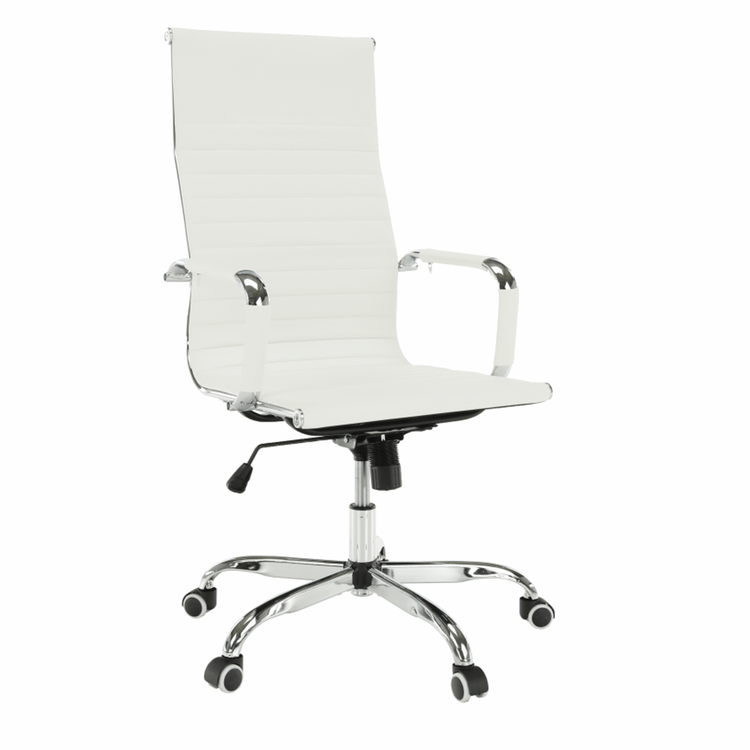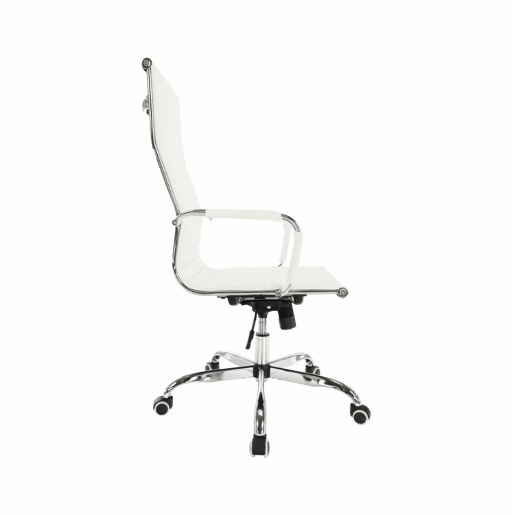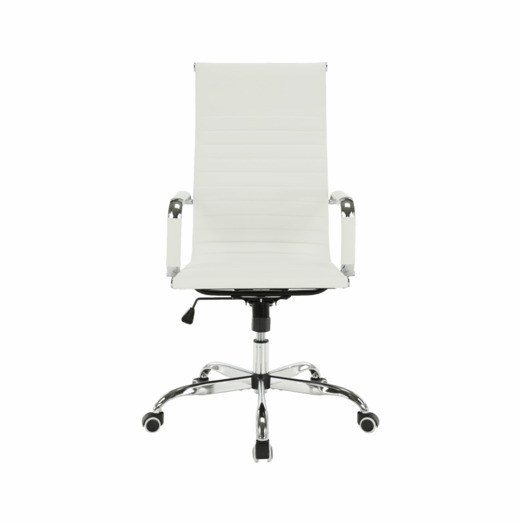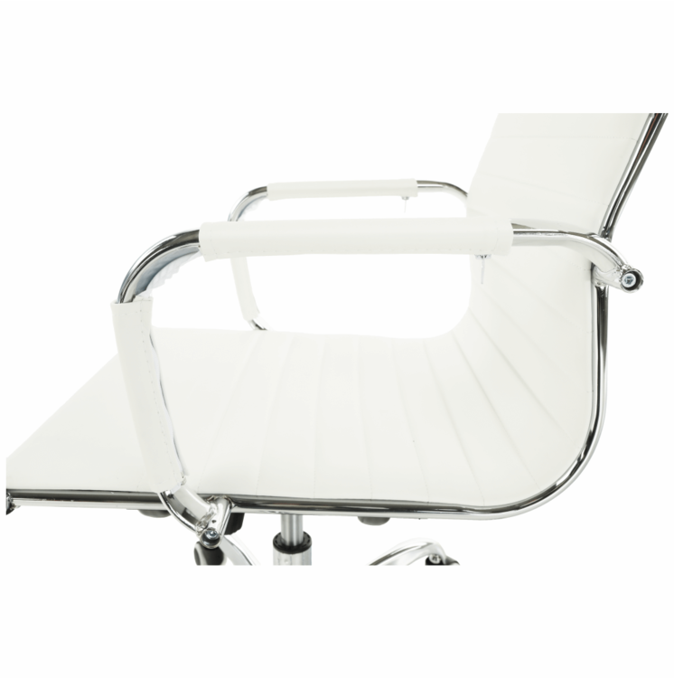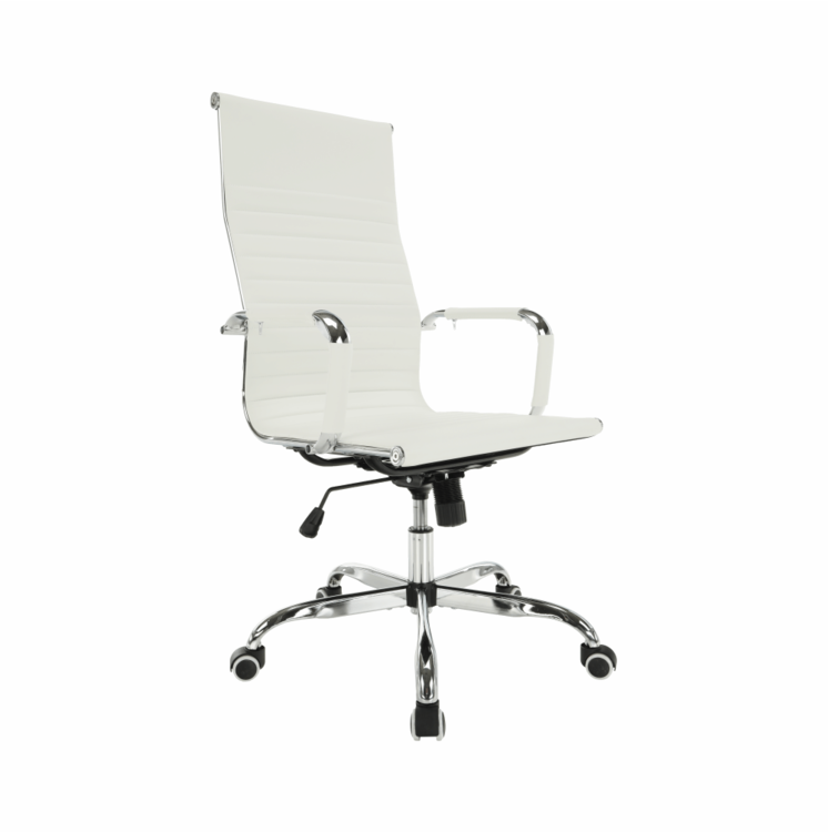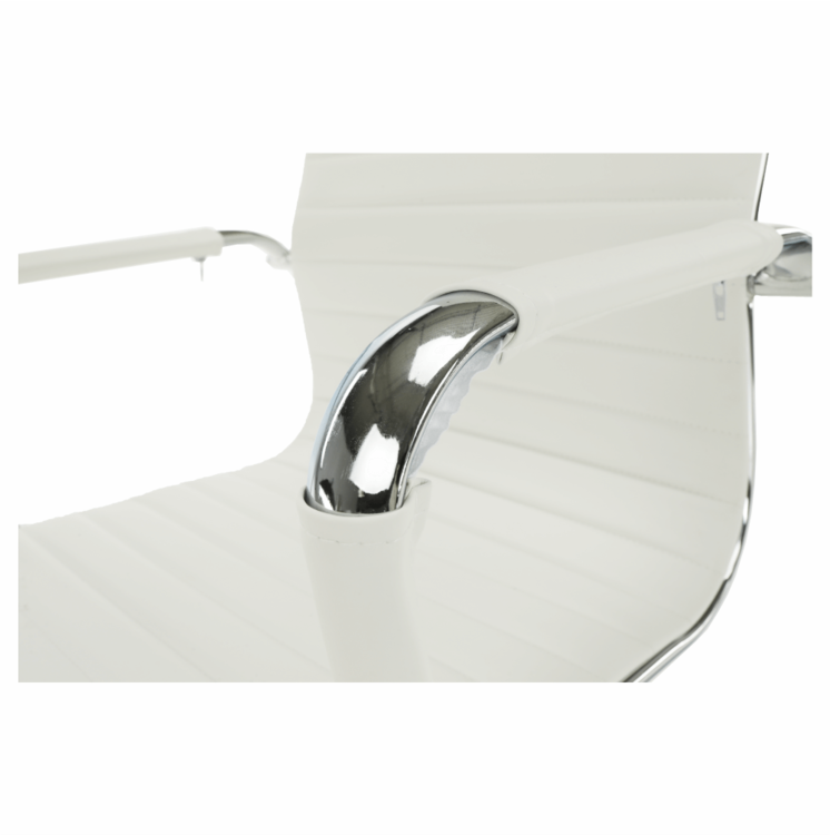 Moderné kancelárske kreslo AZURE 2 NEW s čalúnenými opierkami na ruky a pogumovanými kolieskami ladne zapadne do každej pracovne, kancelárie, ale aj študentskej izby. Pogumované kolieska sú vhodné na plávajúcu aj na drevenú podlahu. Kvalitná ekokoža vo farbe biela pôsobí osviežujúco. Jednoduchý mechanizmus pod sedadlom zabezpečí, že si stoličku nastavíte na vami potrebnú výšku. Pochrómovaná podstava dodáva kreslu patričnú eleganciu.