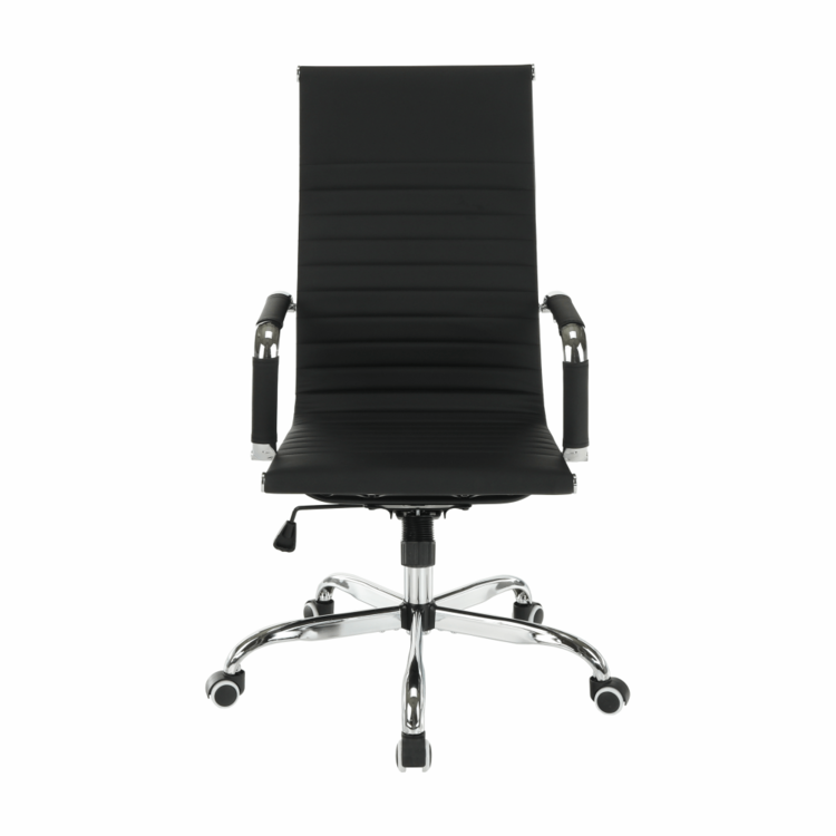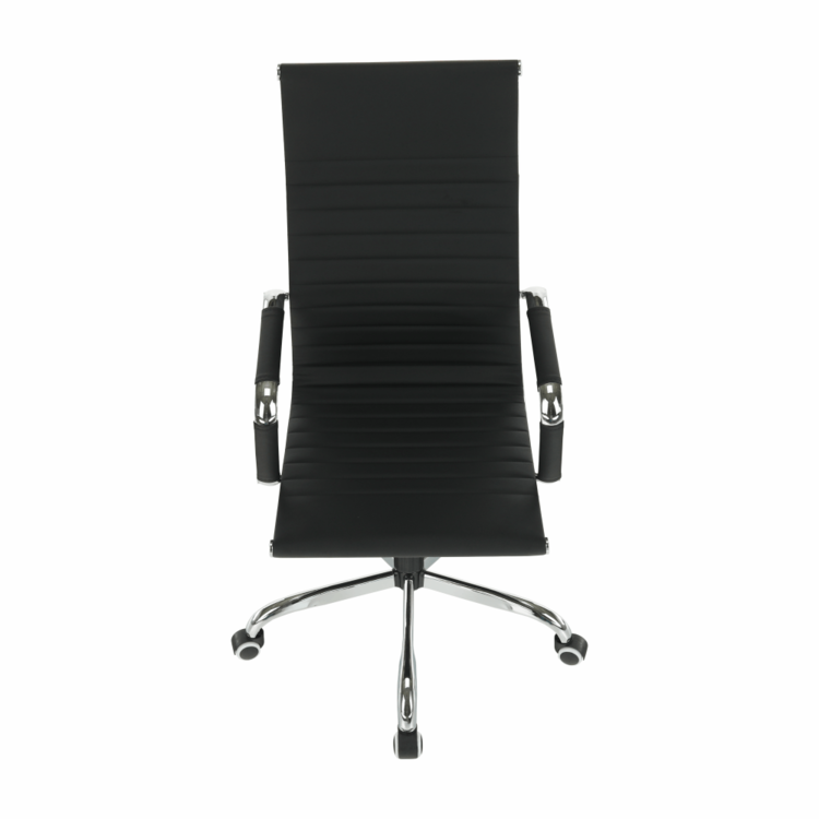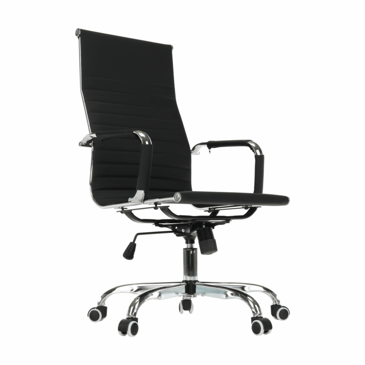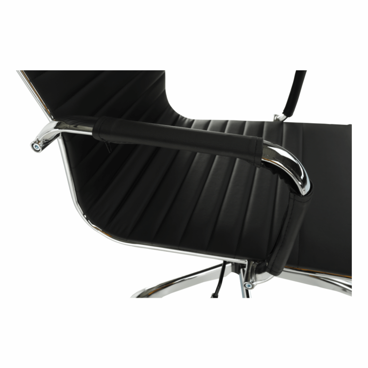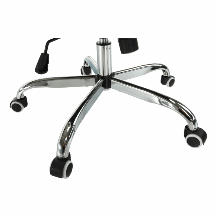 Moderné kancelárske kreslo AZURE 2 NEW s čalúnenými opierkami na ruky a pogumovanými kolieskami ladne zapadne do každej pracovne, kancelárie, ale aj študentskej izby. Pogumované kolieska sú vhodné na plávajúcu aj na drevenú podlahu. Kvalitná ekokoža v čiernej farbe pôsobí osviežujúco. Jednoduchý mechanizmus pod sedadlom zabezpečí, že si stoličku nastavíte na vami potrebnú výšku. Pochrómovaná podstava dodáva kreslu patričnú eleganciu.