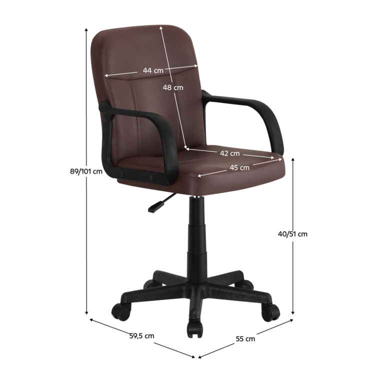 Kancelárske kreslo AYLA NEW má kvalitnú ekokožu hnedej farby, nenáročnú na údržbu. Spodná ružica aj opierky na ruky sú z kvalitného plastu. Jednoduchý mechanizmus na nastavenie výšky sedu Vám zaistí pohodlnejšie a zdravšie sedenie. Jemné, oblé línie očaria aj toho najnáročnejšieho zákazníka.