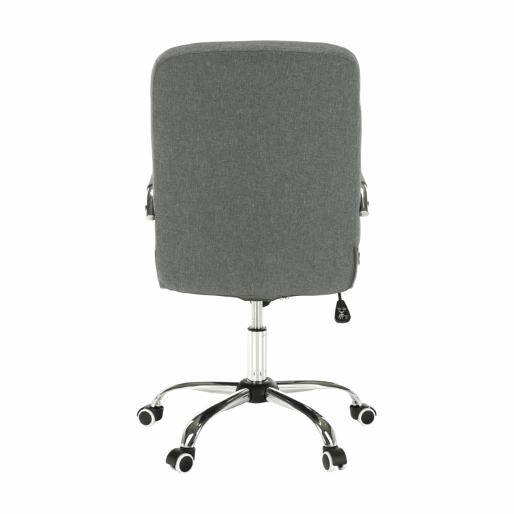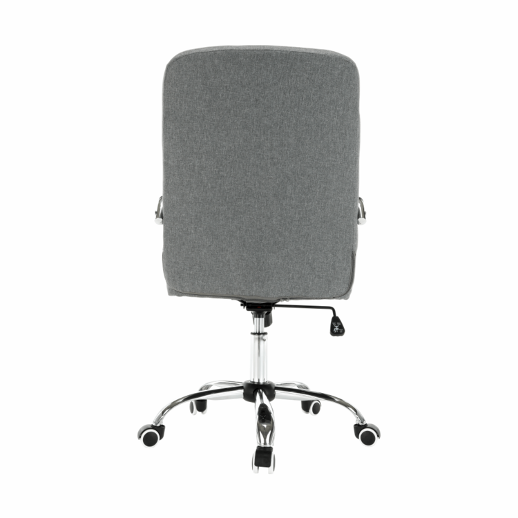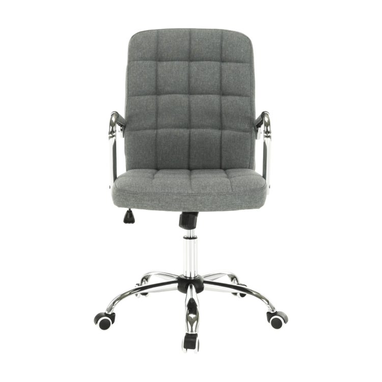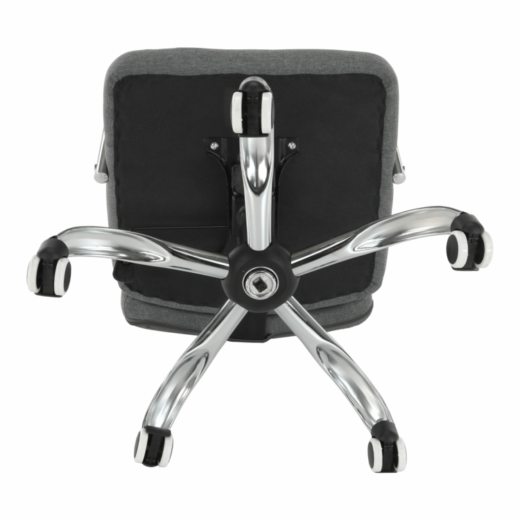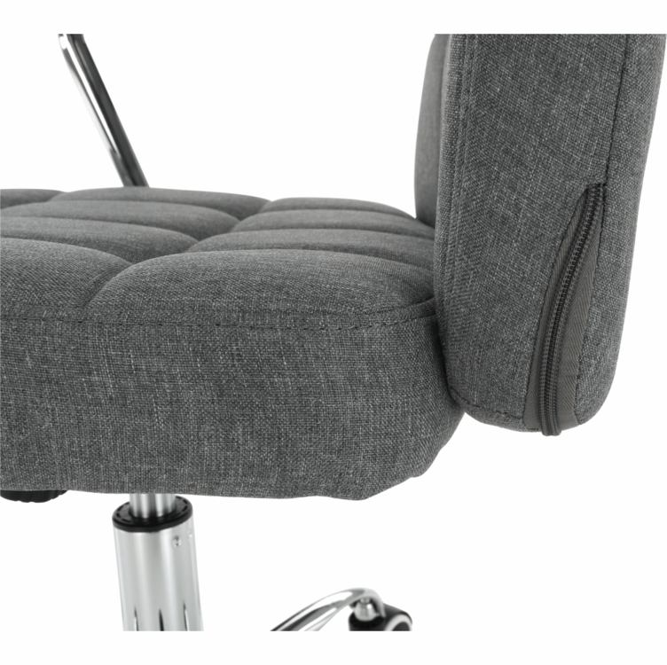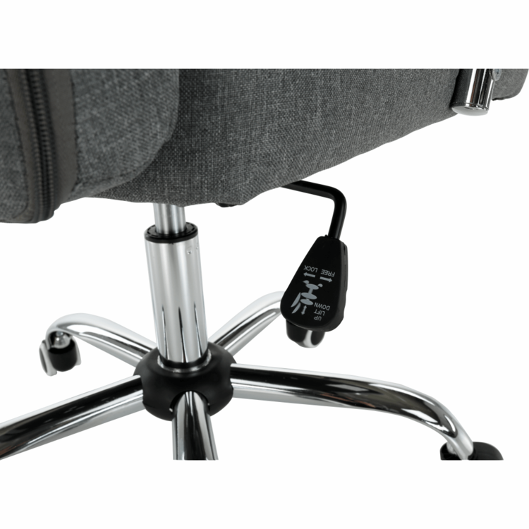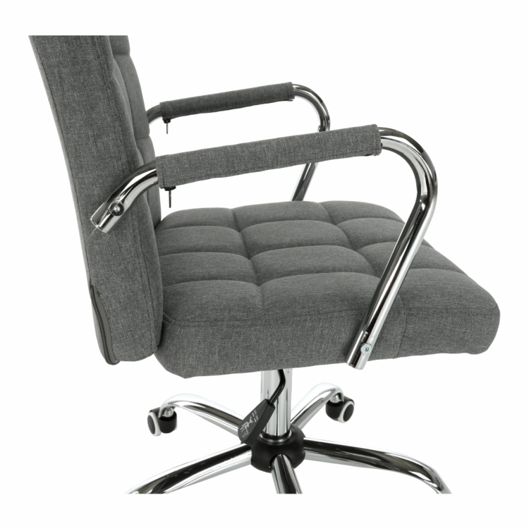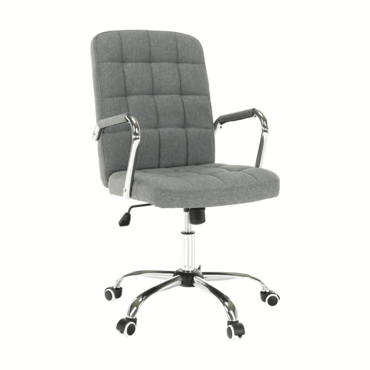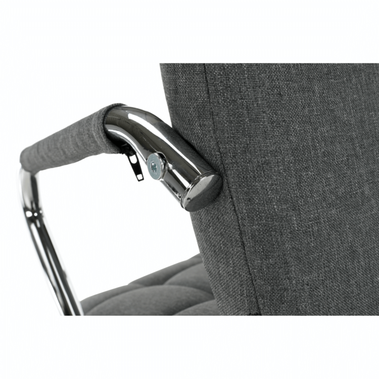Kancelárske kreslo MORGEN, chrómová podstava, na ktorej sú kvalitné pogumované kolieska vhodné na plávajúce aj drevené podlahy. Komfort tohto kresla dopĺňajú chrómové opierky na ruky. Kreslo je čalúnené sivou látkou.