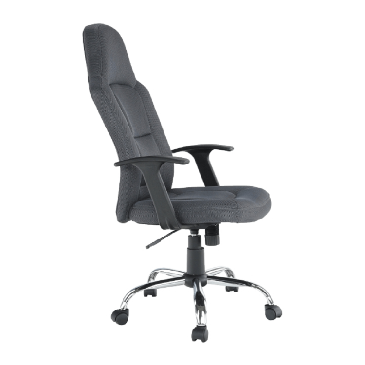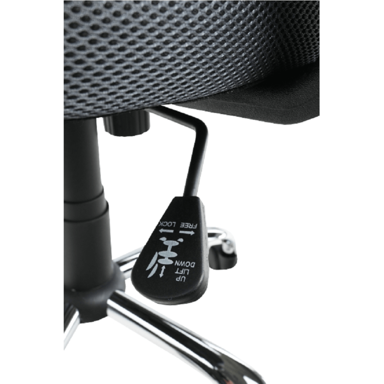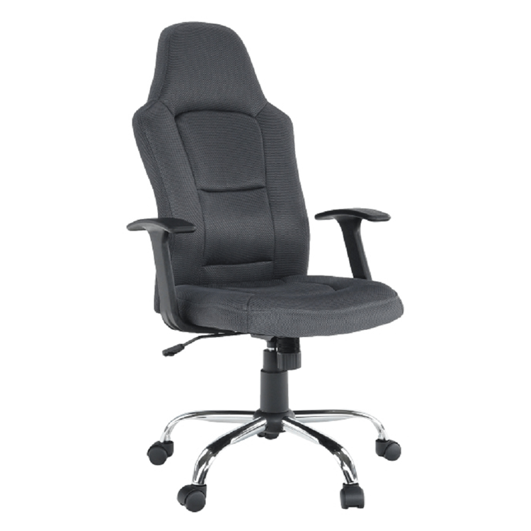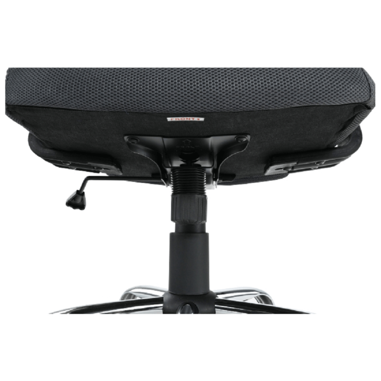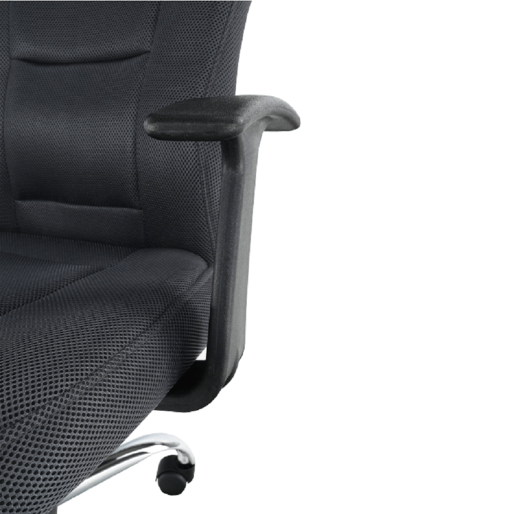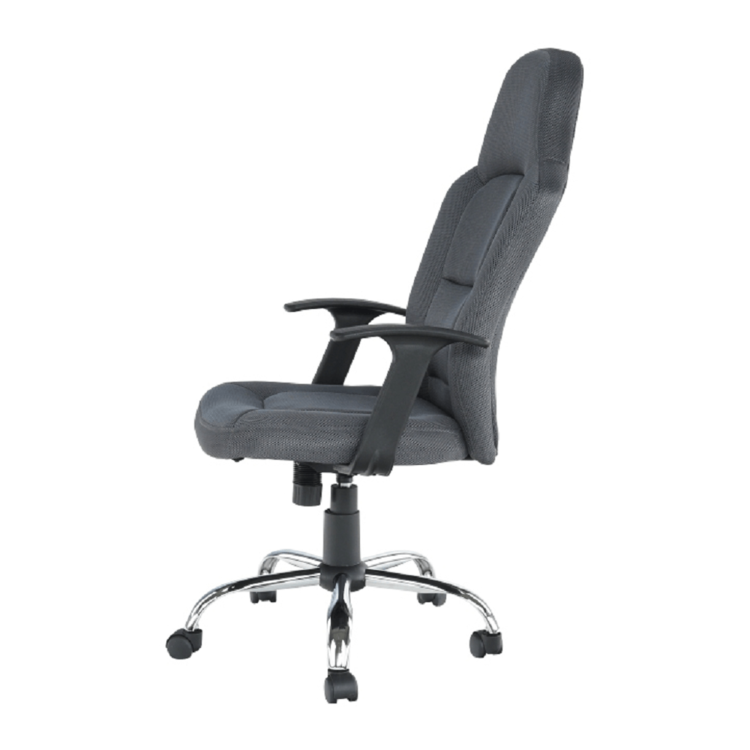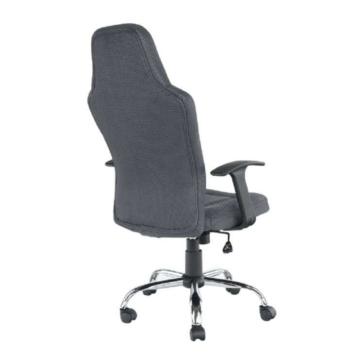 Oblé tvary, mäkké sedenie, látka príjemná na dotyk. Kreslo je čalúnené kvalitnou sieťkovanou látkou v tmavosivej farbe. Operadlo chrbta, okrem toho, že je navrhnuté tak, aby kopírovalo vašu chrbticu, si viete aj polohovať. Päťramenná kovová ružica je pochrómovaná a zaručuje stabilitu.