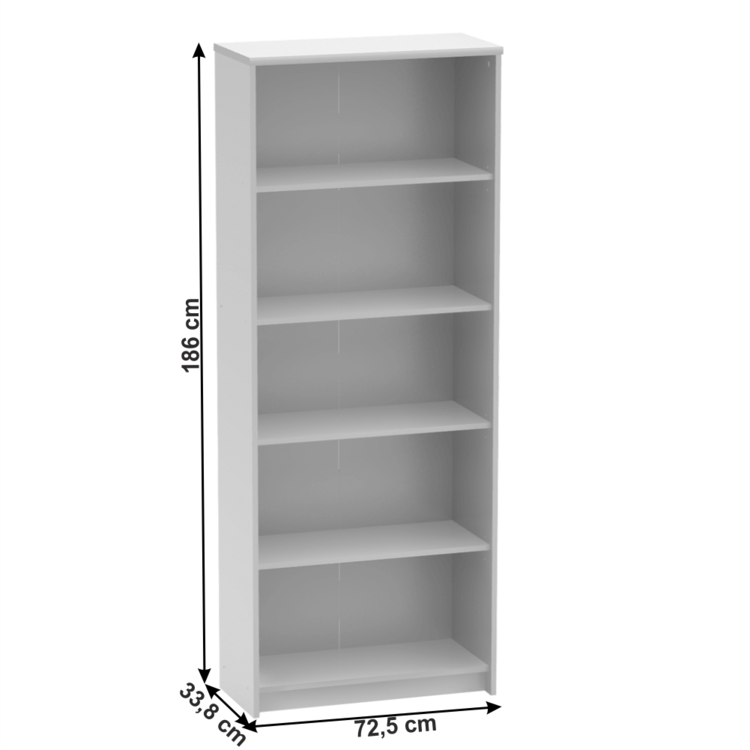 Poskytuje dostatok úložného priestoru. Otvorený úložný priestor je štyrmi policami rozdelený na päť odkladacích plôch. Regál je dodávaný spolu so spodným soklom. Na výrobu bola použitá kvalitná DTD laminovaná v bielom farebnom prevedení.
