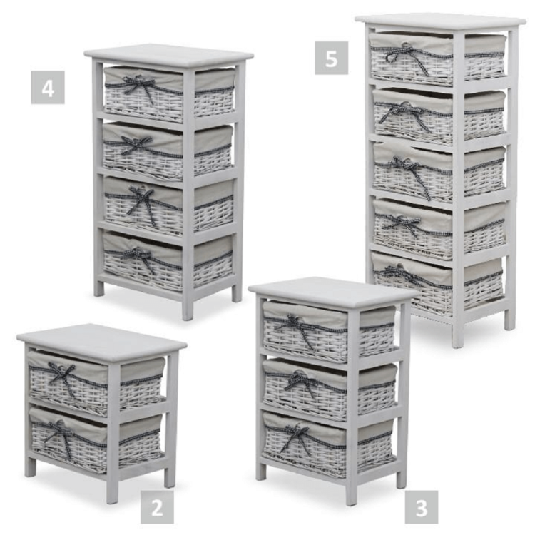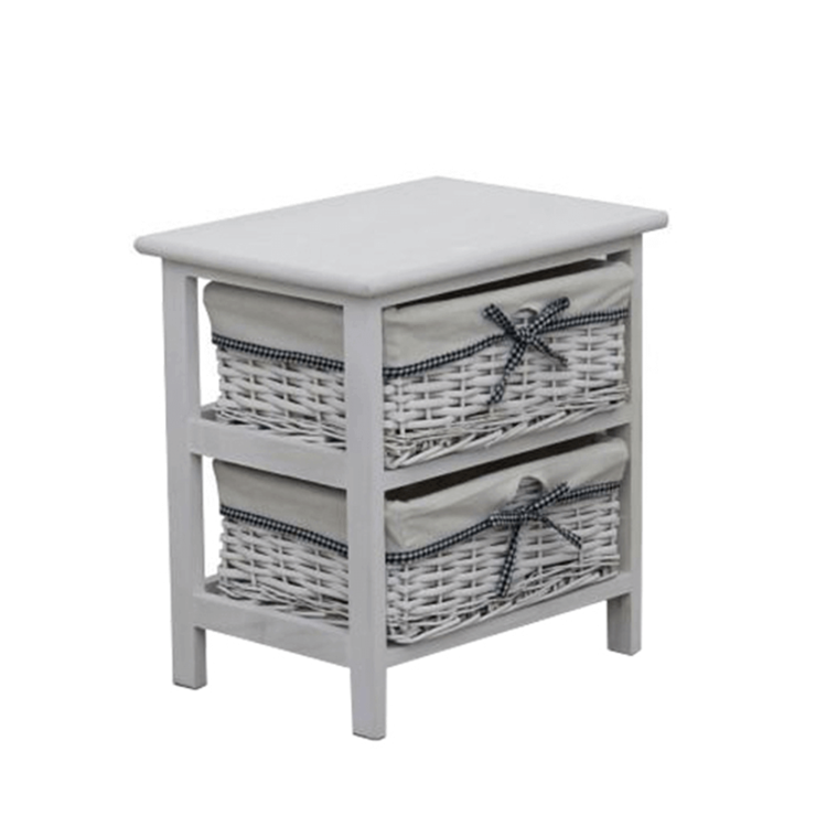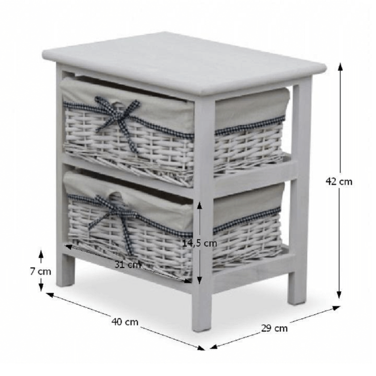 Komoda ( prípadne nočný stolík ) s pevným rámom a 2 prútenými košíkmi,