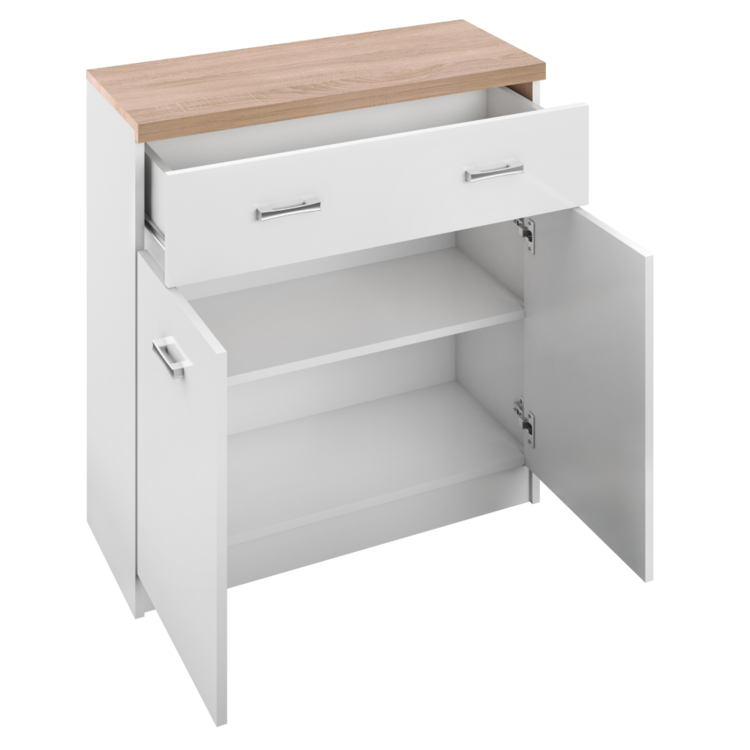 Komoda 2D1S TOPTY TYP 14 je ideálna na úschovu vecí. Má dvojdverové dvierka, nad ktorými sa nachádza šuplík.