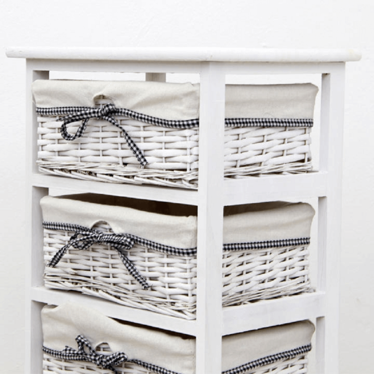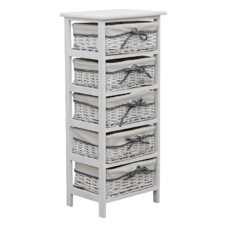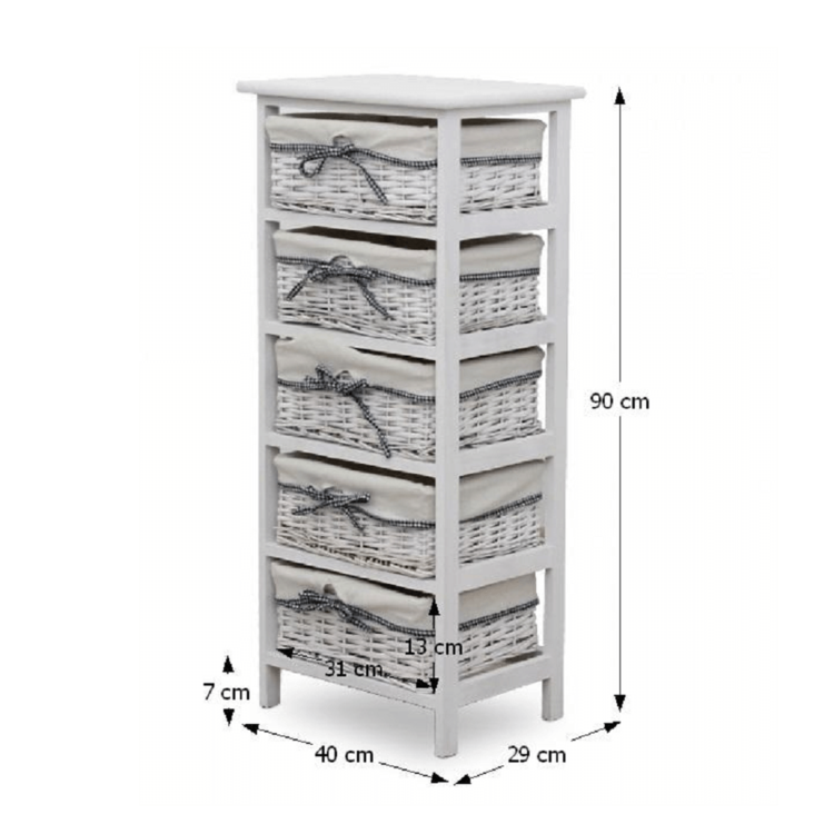 Komoda s pevným rámom a 5 prútenými košíkmi,