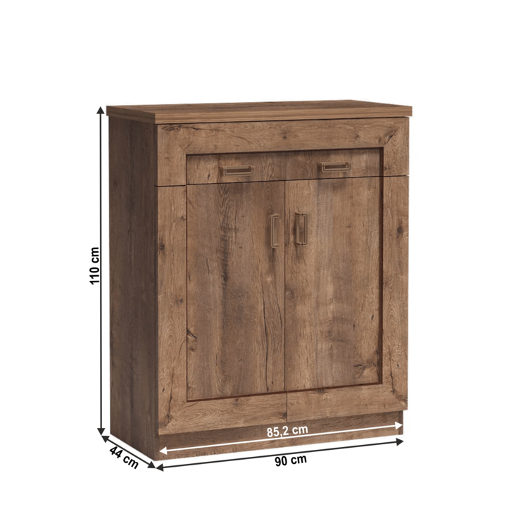 Komoda TEDY T2 ponúka dostatok úložného priestoru. Je dvojdverová, za dvierkami sa nachádza polica. Nad dvierkami je jeden šuplík.