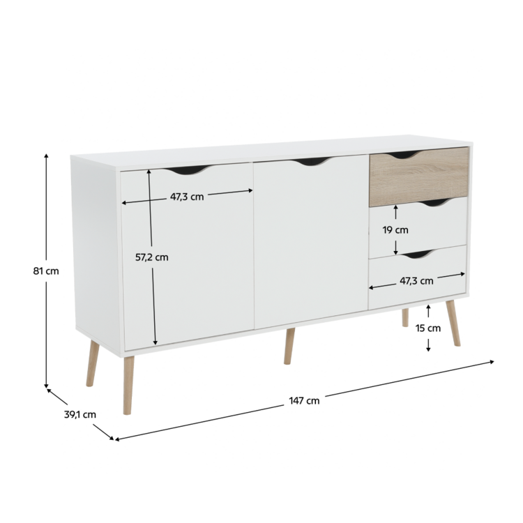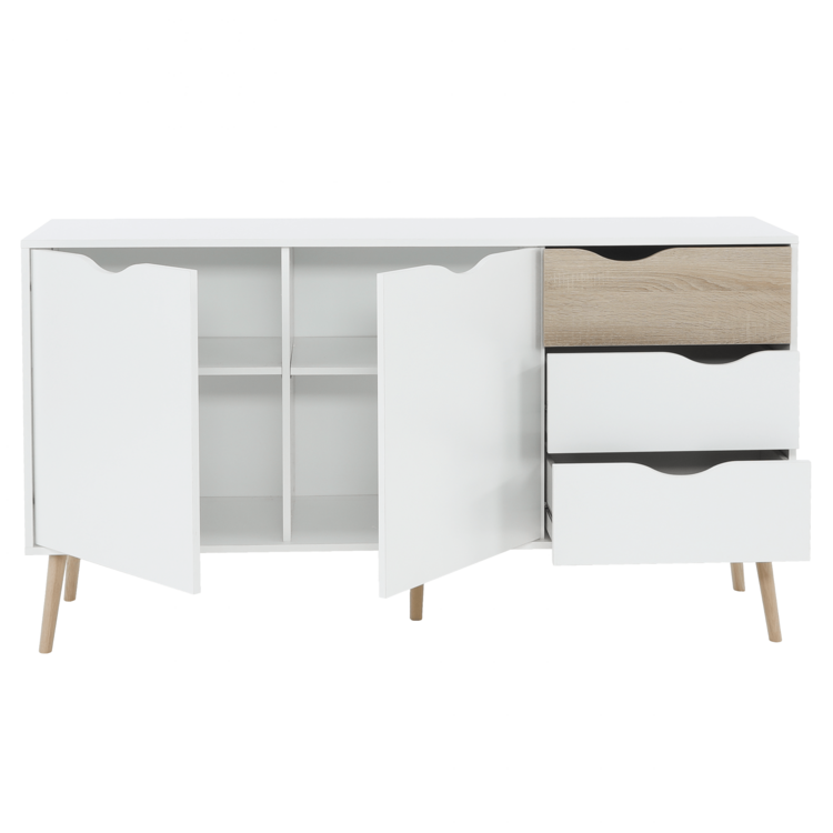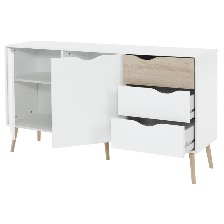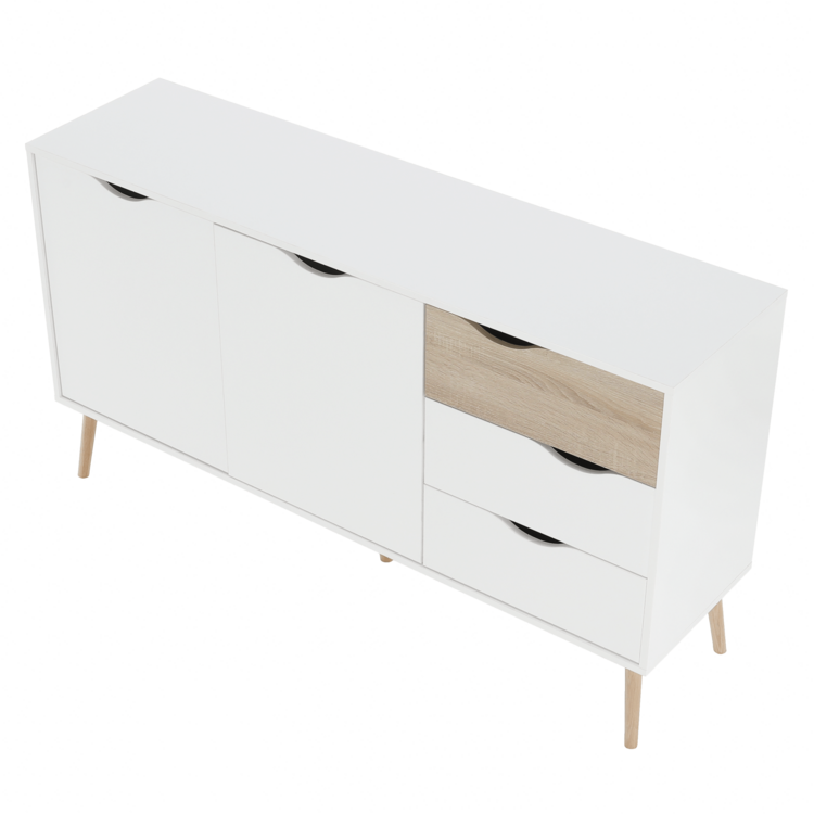 Materiál laminovaná drevotrieska, z ktorého je nábytok vyrobený, dodáva pevnosť, tvrdosť, pružnosť, odolnosť a stáva sa tak jedinečným. Jednoduché sfarbenie biela v kombinácii s prírodnou hnedou v prevedení dub sonoma vytvára dokonalú atmosféru.