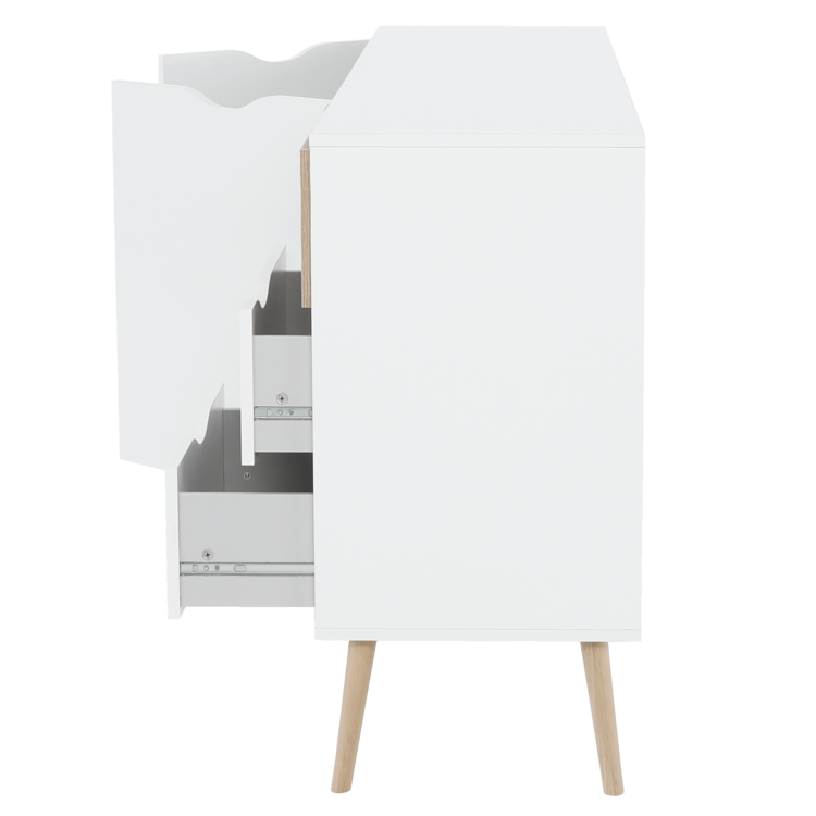 Pozostáva z dvoch dvierok a troch šuplíkov. Za dvierkami z ľavej aj pravej strany sa nachádzajú spolu štyri odkladacej plochy.