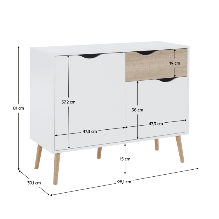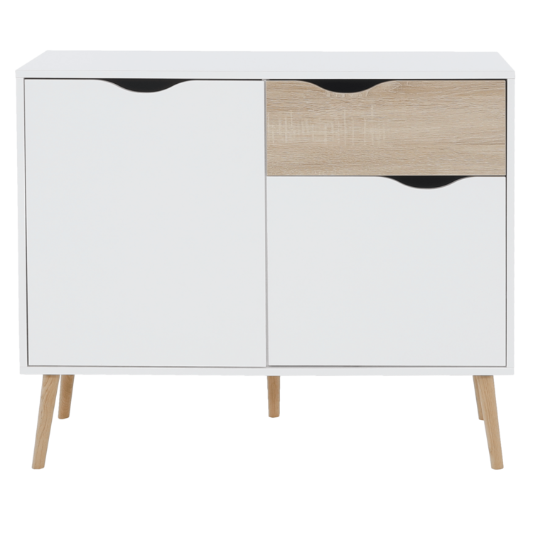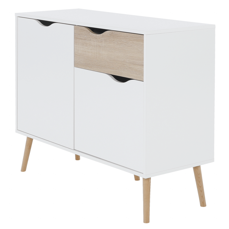 Materiál laminovaná drevotrieska, z ktorého je nábytok vyrobený, dodáva pevnosť, tvrdosť, pružnosť, odolnosť a stáva sa tak jedinečným. Jednoduché sfarbenie biela v kombinácii s prírodnou hnedou v prevedení dub sonoma vytvára dokonalú atmosféru.