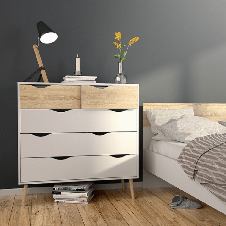Ideálna aj do spálne na uschovanie oblečenia a spodnej bielizne. Pozostáva z dvoch menších šuplíkov a troch väčších šuplíkov.