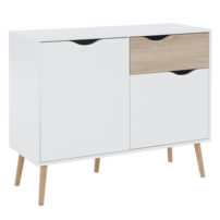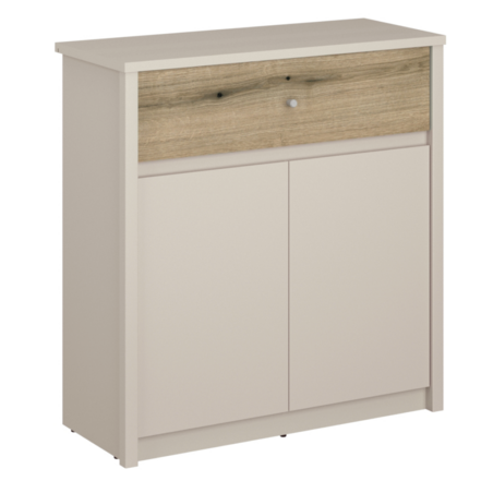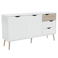 Materiál laminovaná drevotrieska, z ktorého je nábytok vyrobený, dodáva pevnosť, tvrdosť, pružnosť, odolnosť a stáva sa tak jedinečným. Jednoduché sfarbenie biela v kombinácii s prírodnou hnedou v prevedení dub sonoma vytvára dokonalú atmosféru.