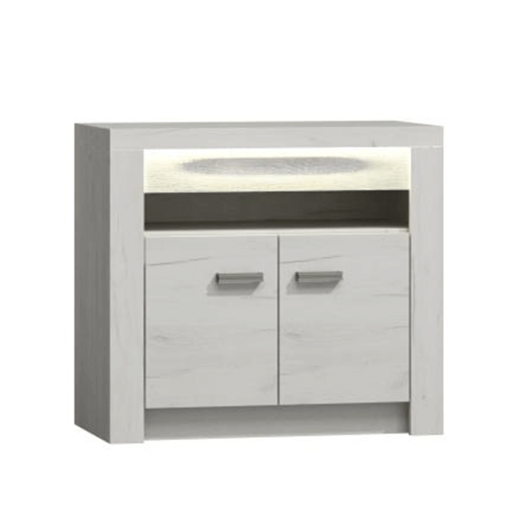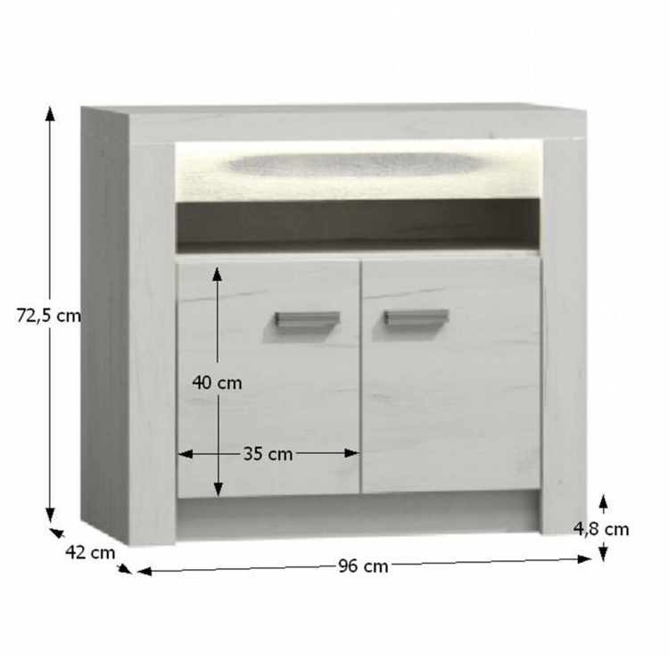 Disponuje dvojdverovou skrinkou s poličkou a otvoreným odkladacím priestorom.