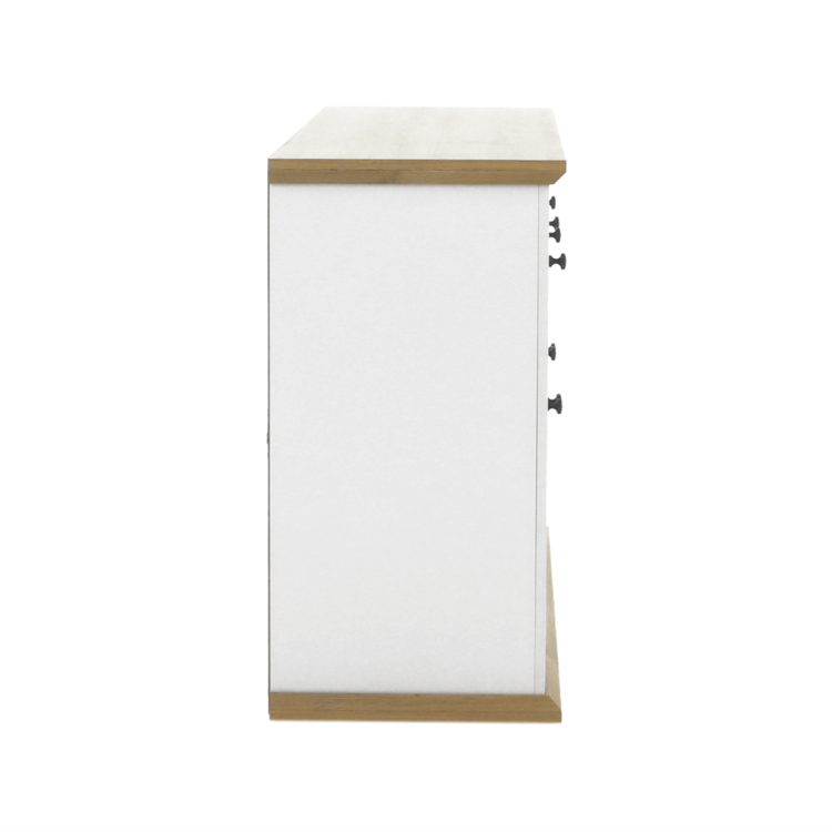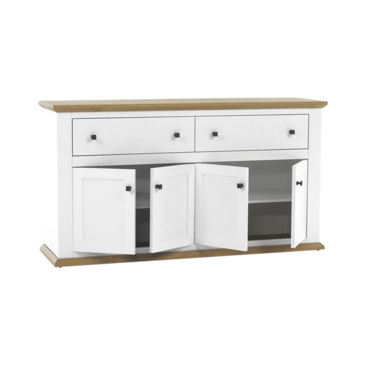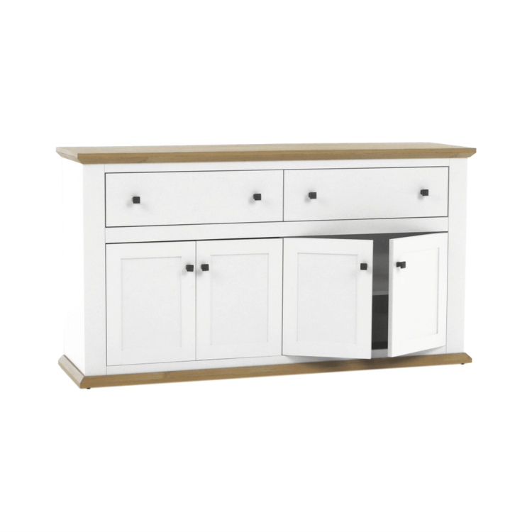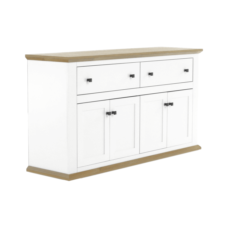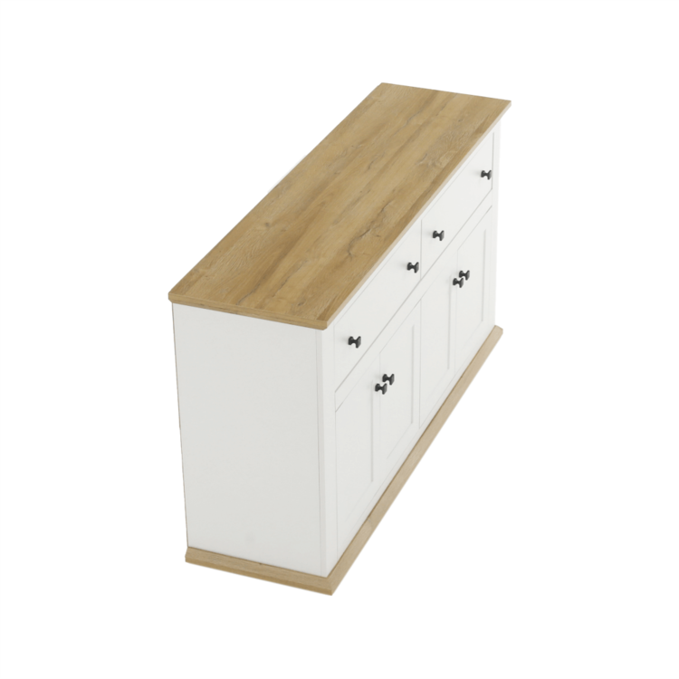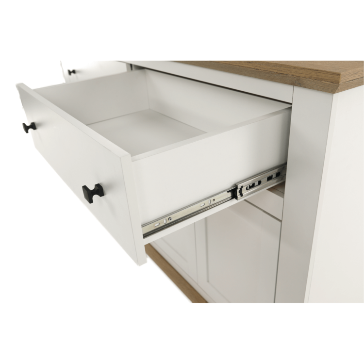 Disponuje úložným priestorom v podobe dvoch šuplíkov a štyroch skriniek.