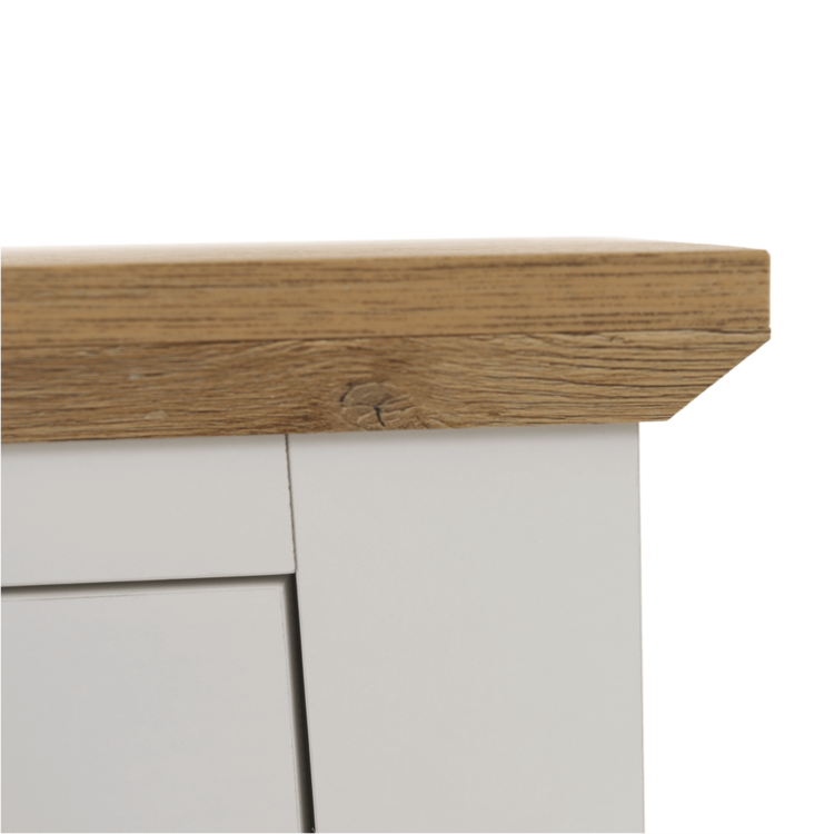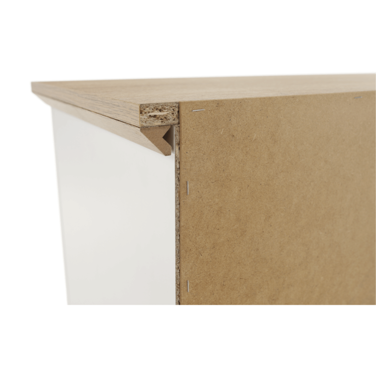 Vyrobená je z laminovanej drevotriesky s ABS hranami s hrúbkou až 40 mm. Originálnou ju robí aj farebné prevedenie dub grand s 3D efektom.