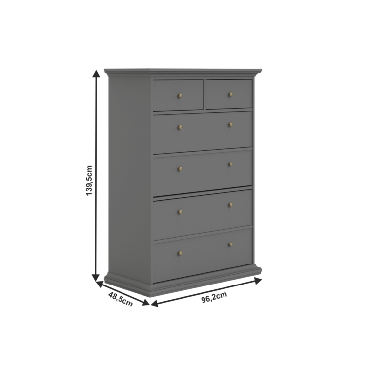 Komoda PARIS 76718 ponúka dostatok úložného priestoru. Tvoria ju dva menšie a štyri väčšie šuplíky.