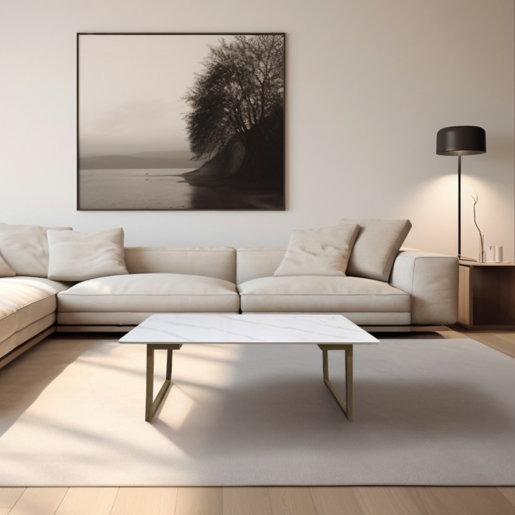 Konferenčný stolík, svetlý mramor/mliečna/gold chróm-zlatý, ENION 2 NEW