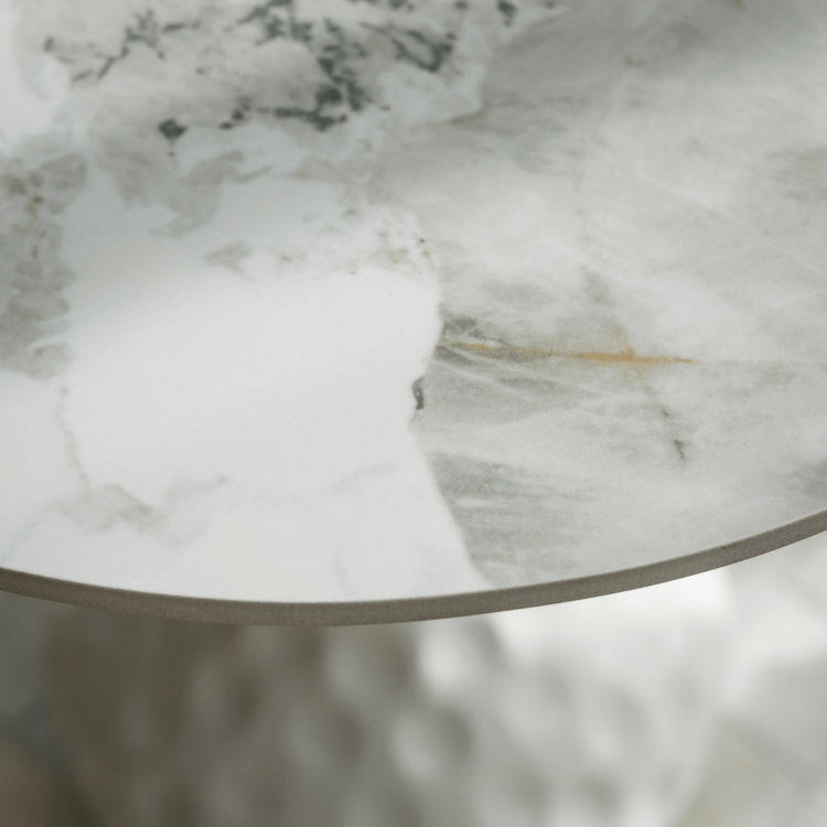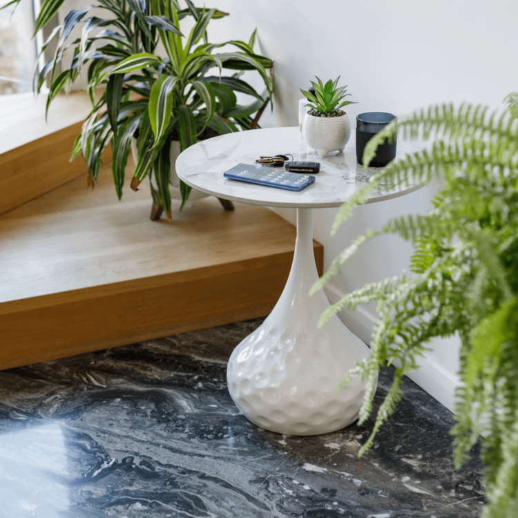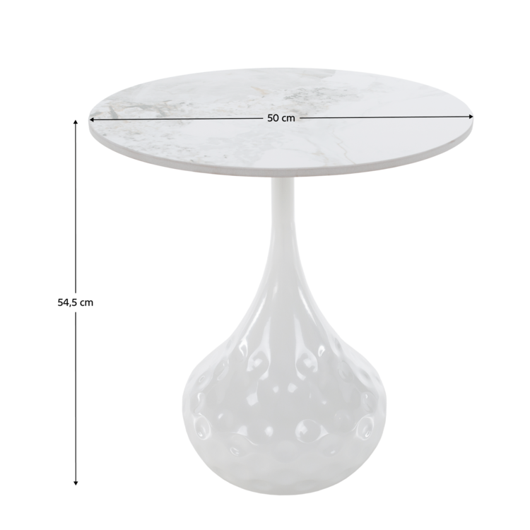 Vkusne oživí priestor v pracovni, v predsieni alebo vo vašom relaxačnom kútiku. Vyrobený je z brúseného kameňa vo farebnom prevedení biely mramor. Konštrukcia je pevná a stabilná, vyrobená z ocele v bielom prevedení.