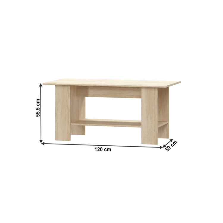 Konferenčný stolík 120 TEYO je vyrobený z kvalitnej DTD laminovanej v prevedení dub sonoma. Ponúka úložný priestor v podobe jednej police. Konferenčný stolík je vhodný aj do moderných obývacích izieb či do kancelárie.