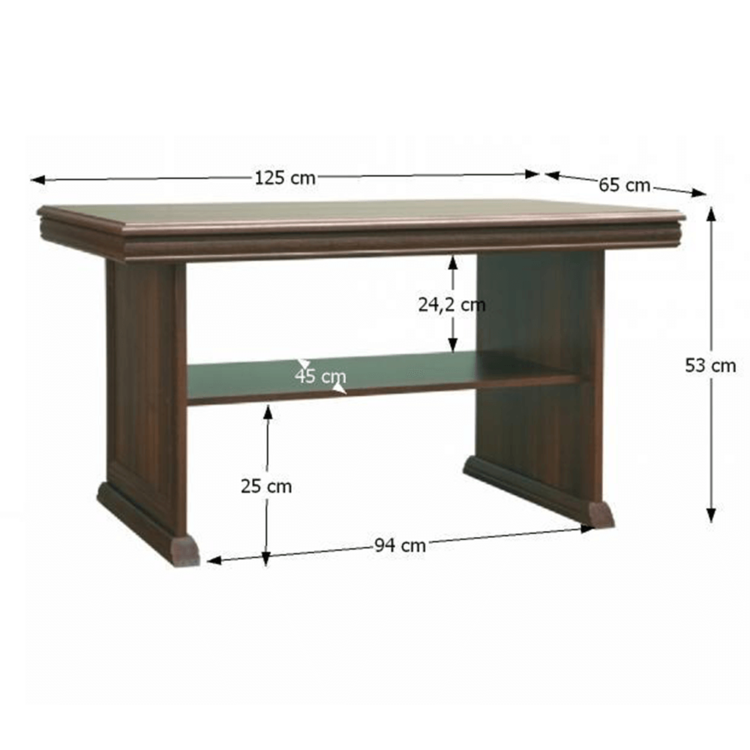 Konferenčný stolík KORA KL je pevný a poslúži vám pri servírovaní občerstvenia, ako odkladacia plocha na rozčítané noviny či diaľkové ovládanie od televízora. Je vybavený jednou policou.