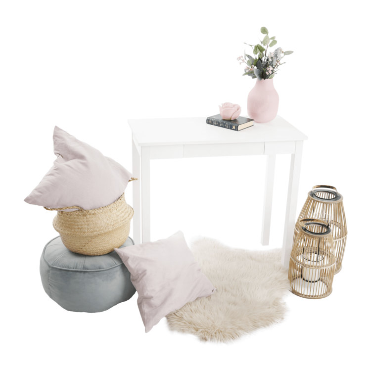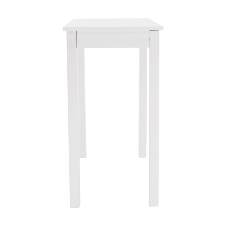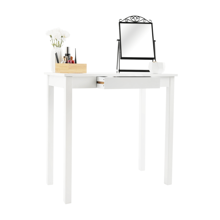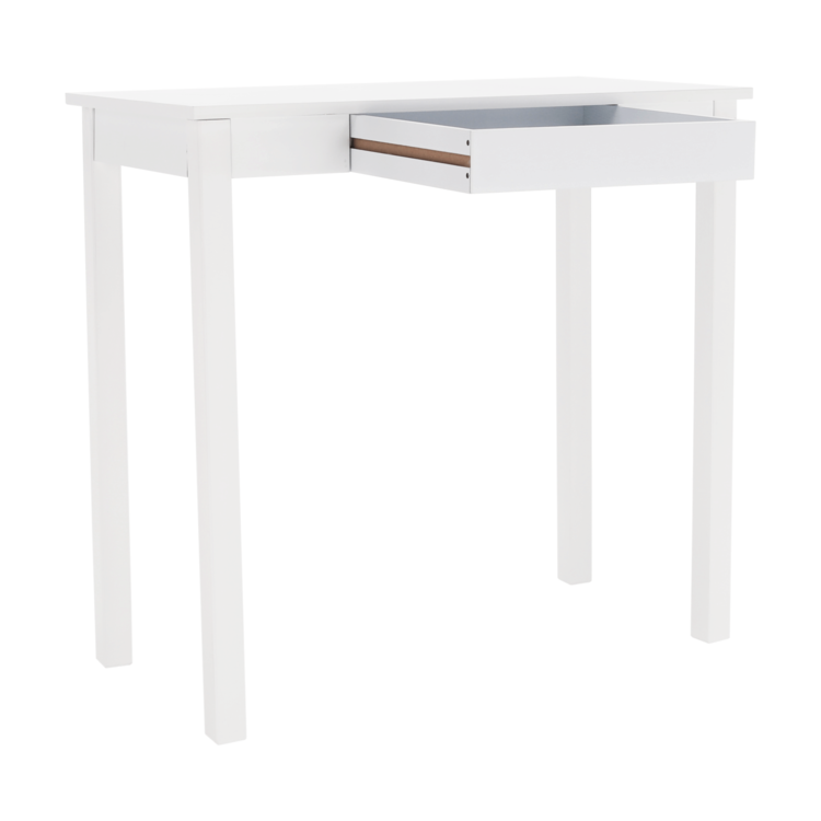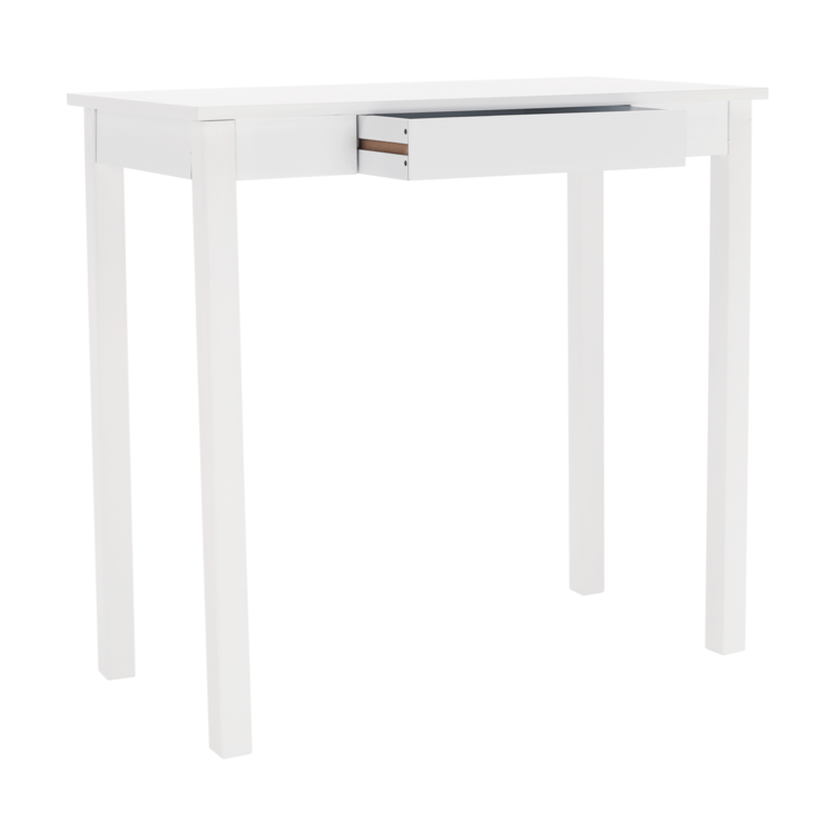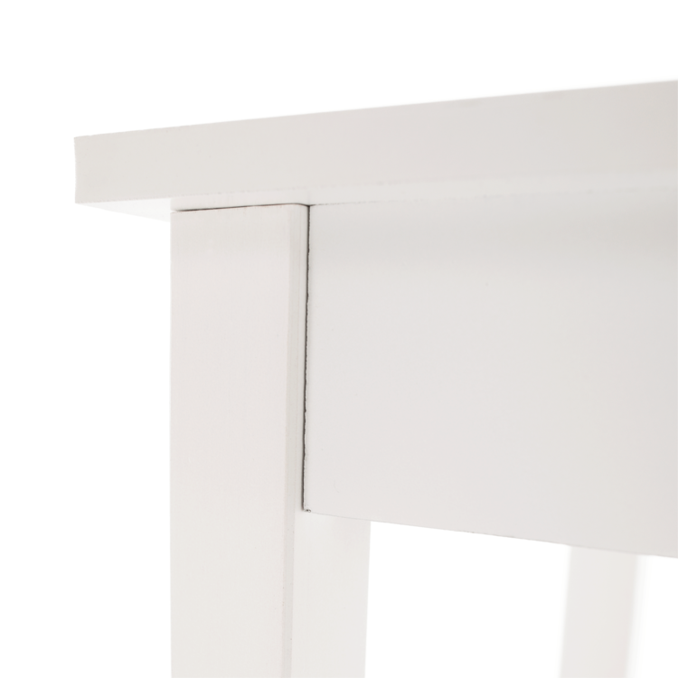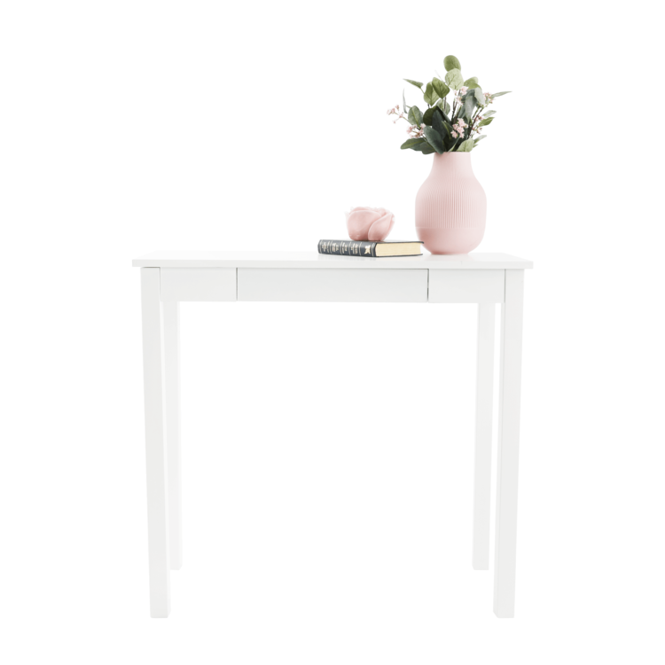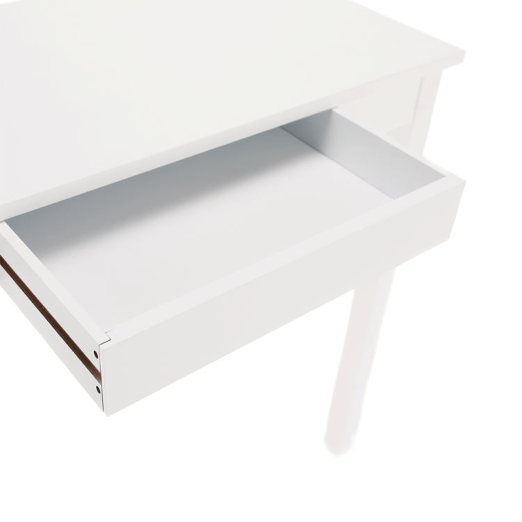 Vyrobený je z MDF v jedinečnom bielom prevedení. Očarí ako odkladací stolík, alebo spolu so zrkadlom poslúži na posledné skrášlenie pred odchodom z domu. Interiér môže zdobiť aj ako toaletný, písací či nočný stolík. Disponuje úložným priestorom v podobe jedného šuplíka. Minimalistický dizajn, maximálne využitie.