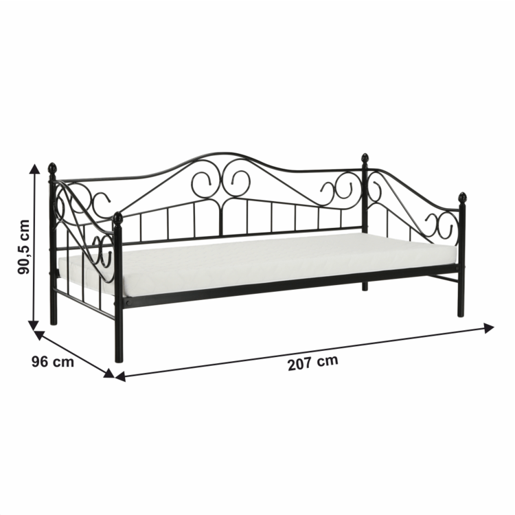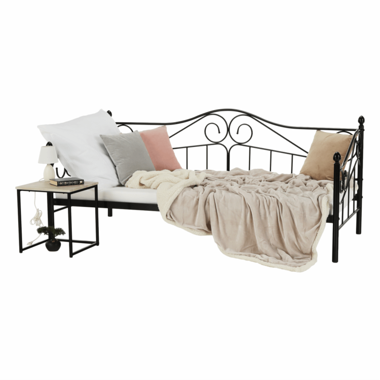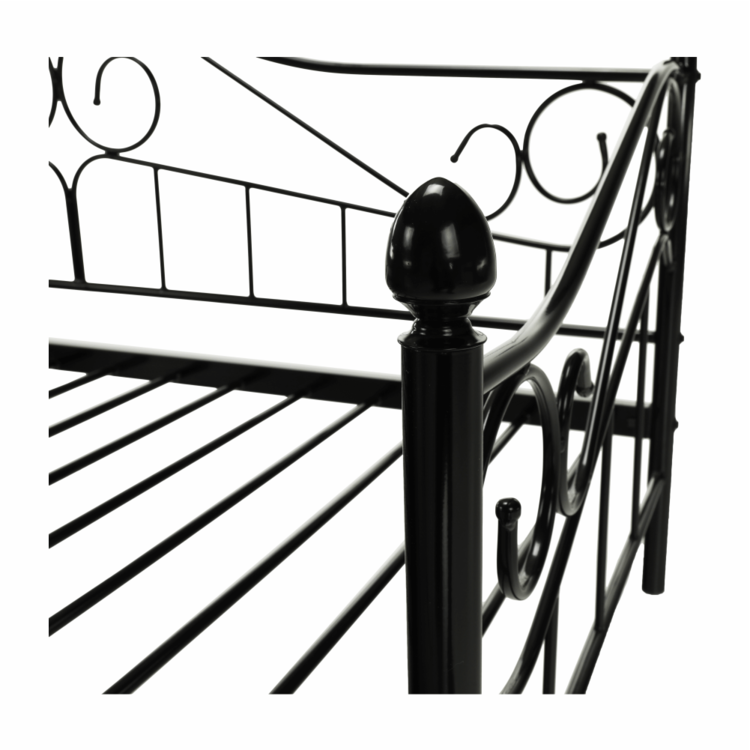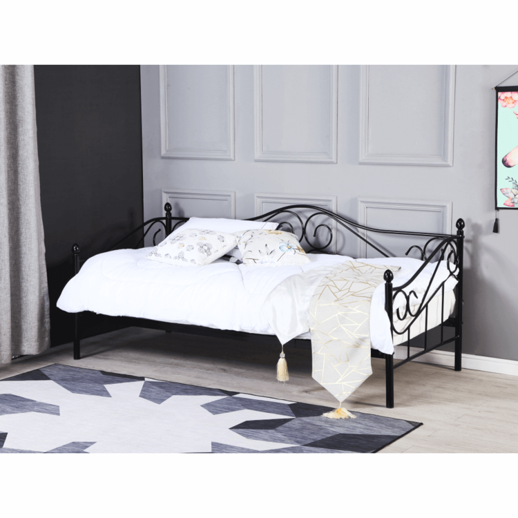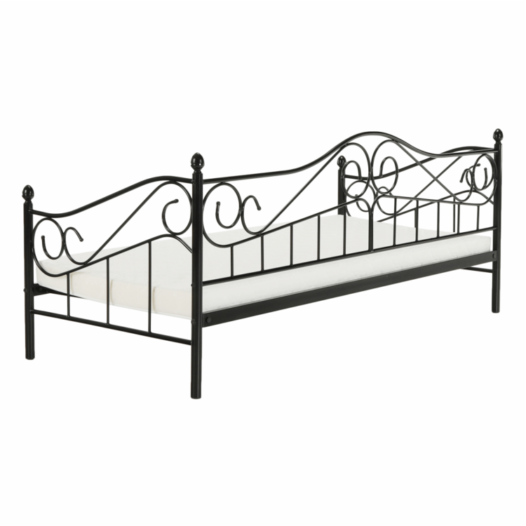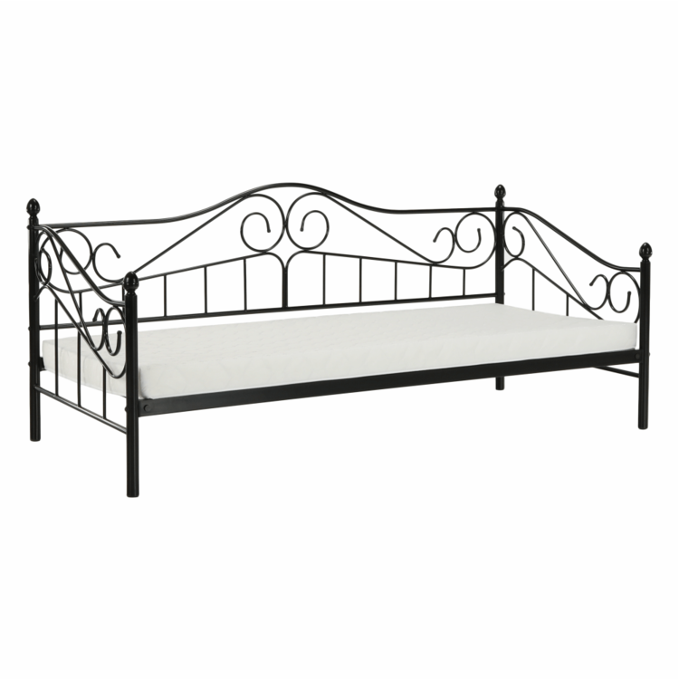 Jednolôžko, ktoré cez deň dokáže 100% zastúpiť pohovku. Posteľ je vyrobená z kvalitného kovu. Čierne farebné prevedenie, dekoratívne prvky a jemný nádych romantikyjednoducho zladíte s akýmkoľvek nábytkom. Súčasťou postele je kovový rošt, ktorý zabezpečí posteli dobrú stabilitu. Posteľ DAINA je splnením každého sna o romantickej posteli. Zaobstarajte ju pre vašu mladú slečnu, určite ňou zabodujete.